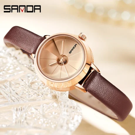 CURREN Women’s Quartz Watch with Leather Strap and Elegant Design