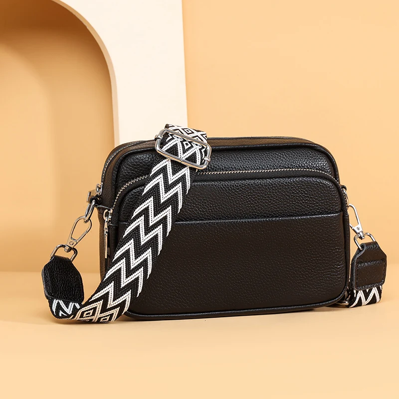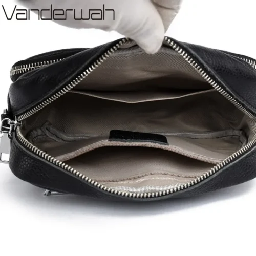 100% Genuine Leather Women’s Handbag – Solid Color Crossbody Shoulder Tote with Multi-Compartment Zipper Design for Daily Commute