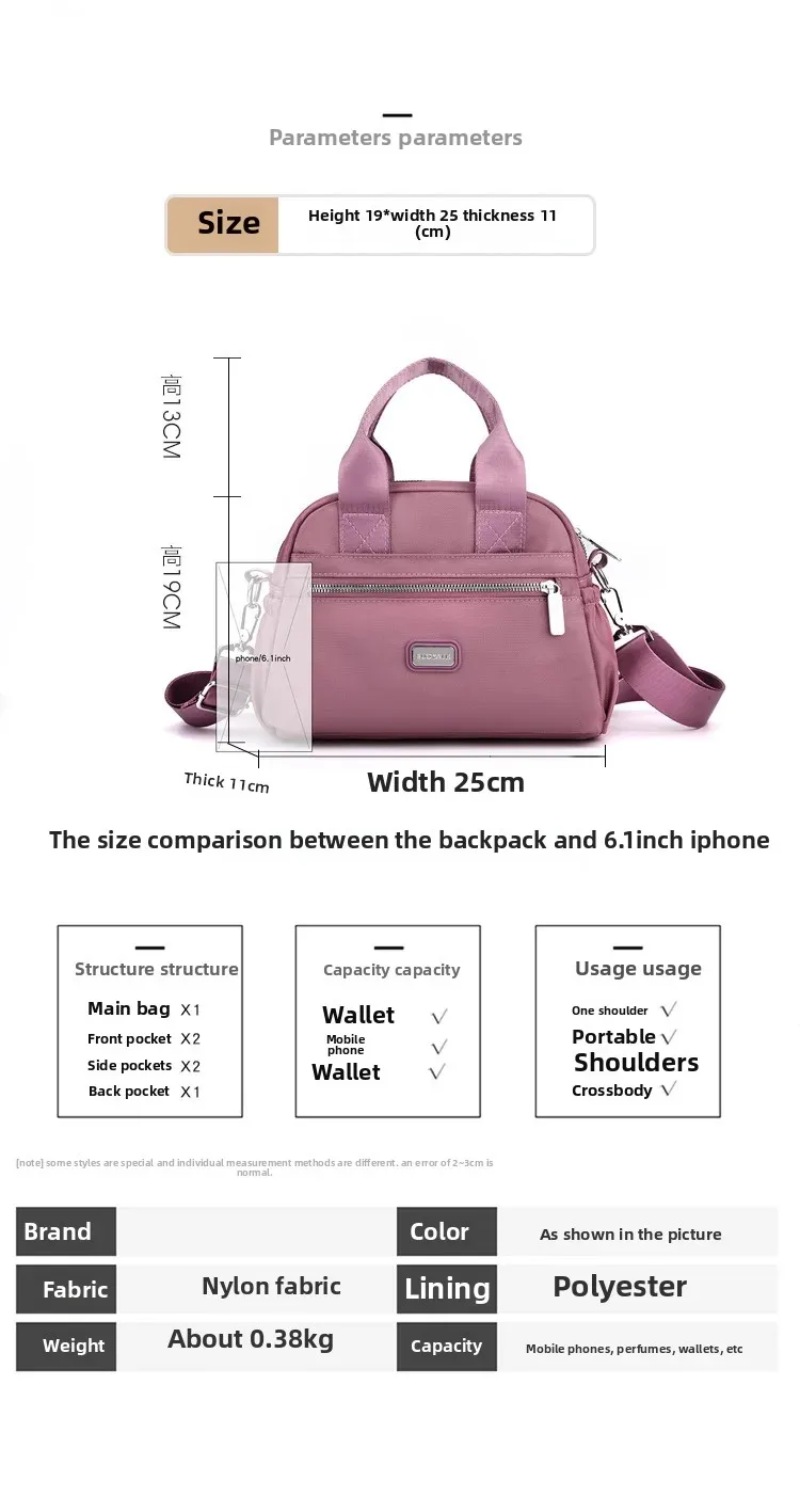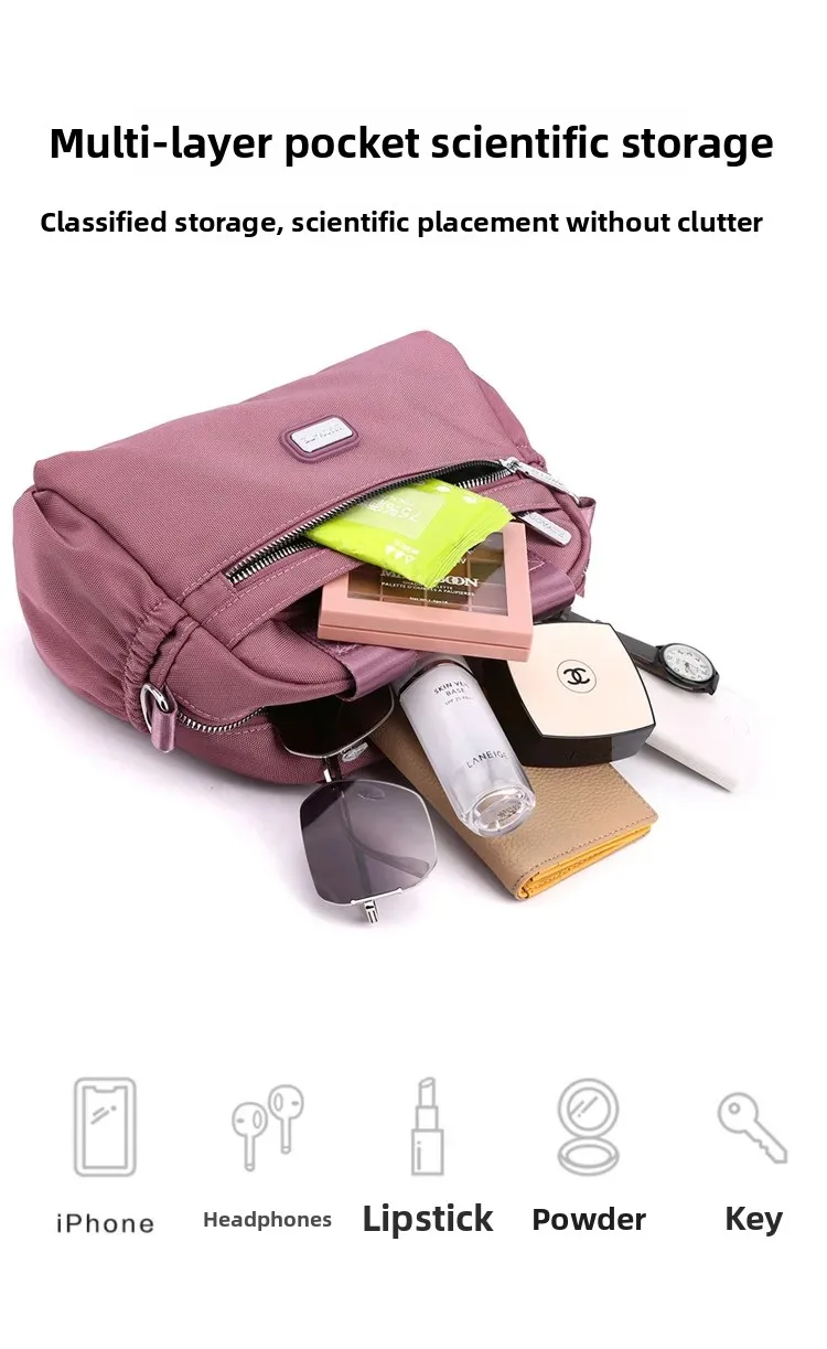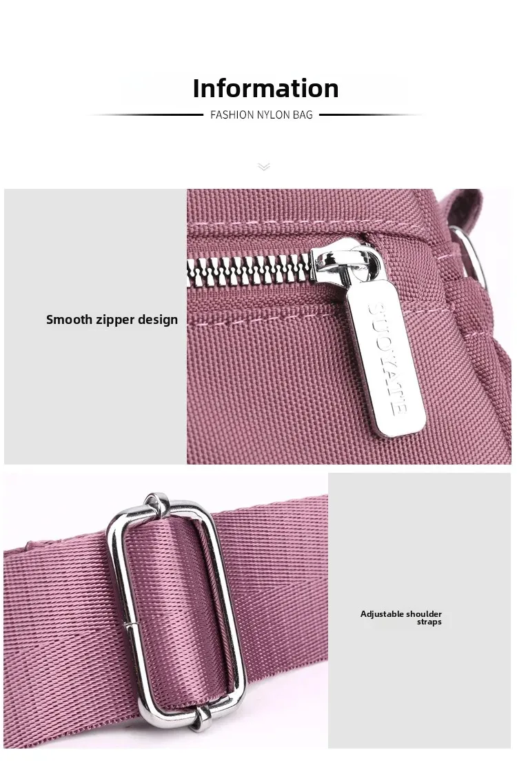 Casual Nylon Shoulder Bag – Fashionable Waterproof Travel Crossbody with Zipper Pocket