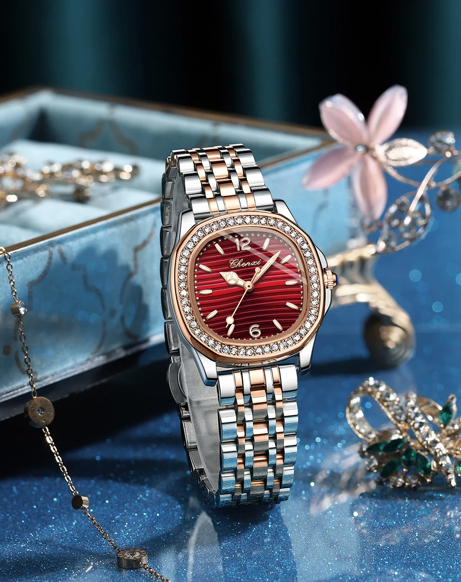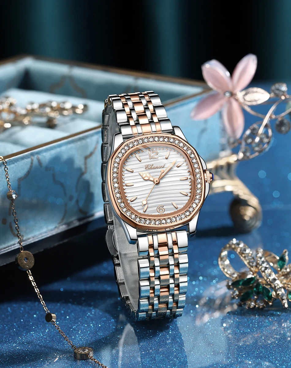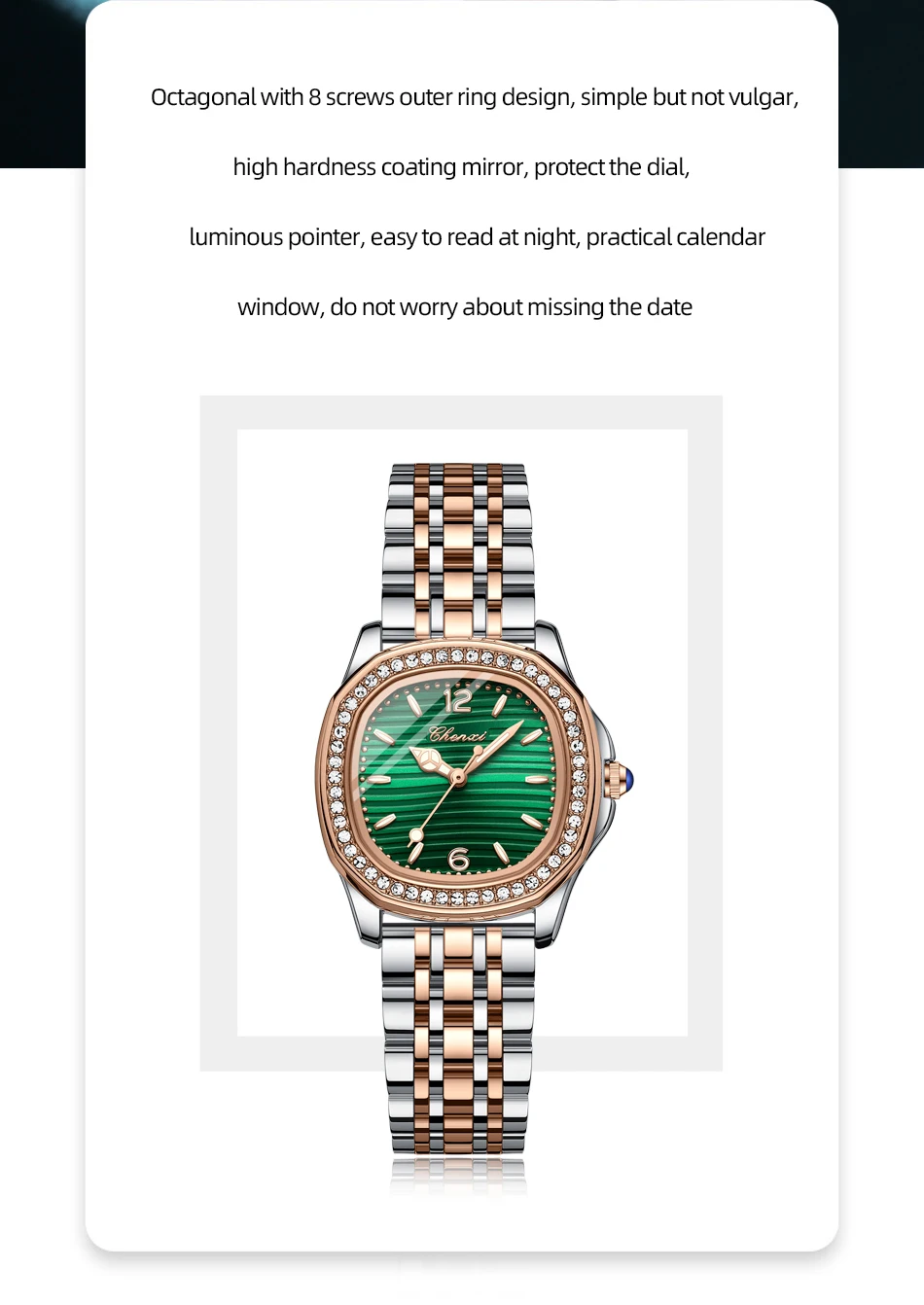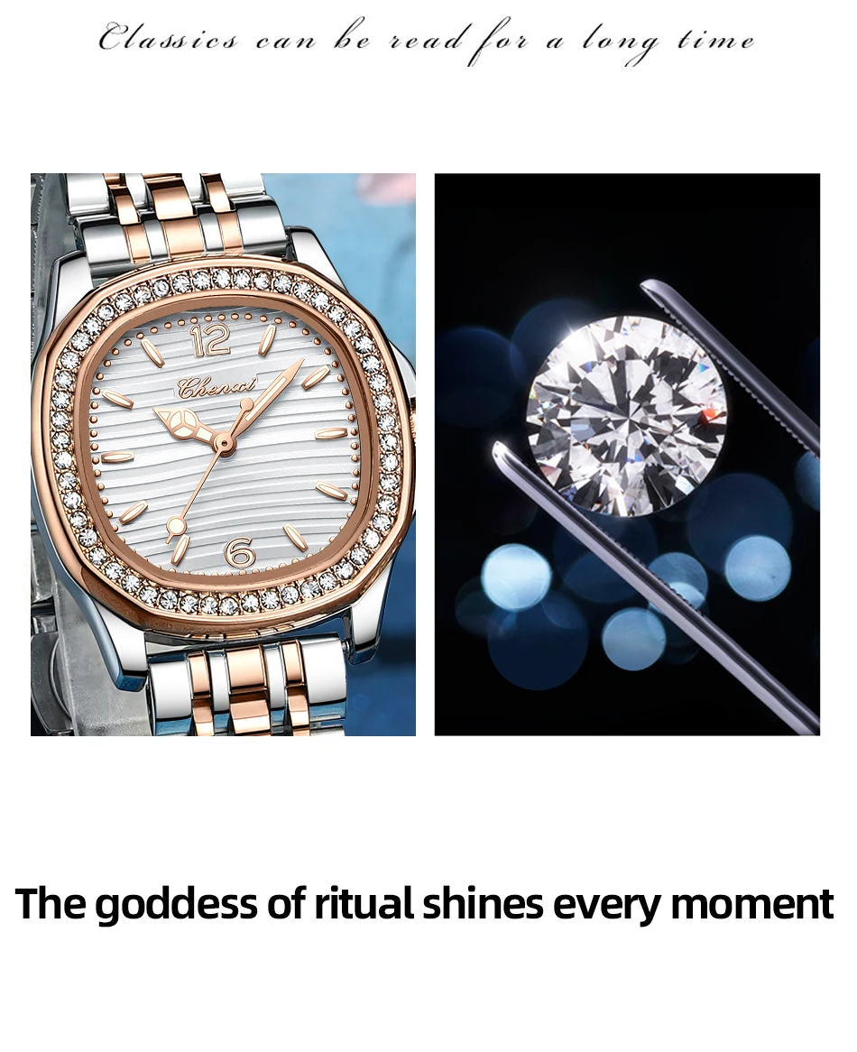 CHENXI Luxury Women’s Watch, Elegant Rose Gold Quartz Watch with Diamond Dial