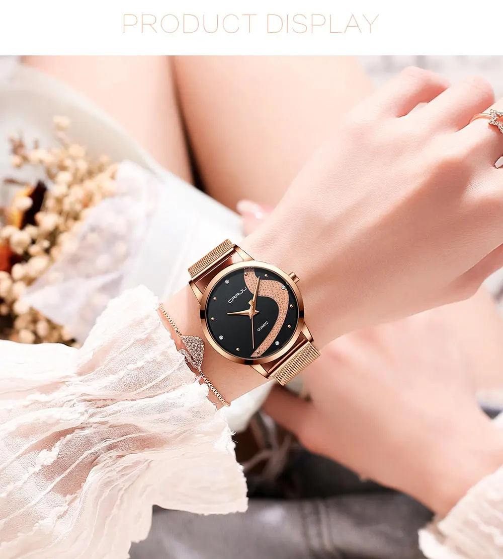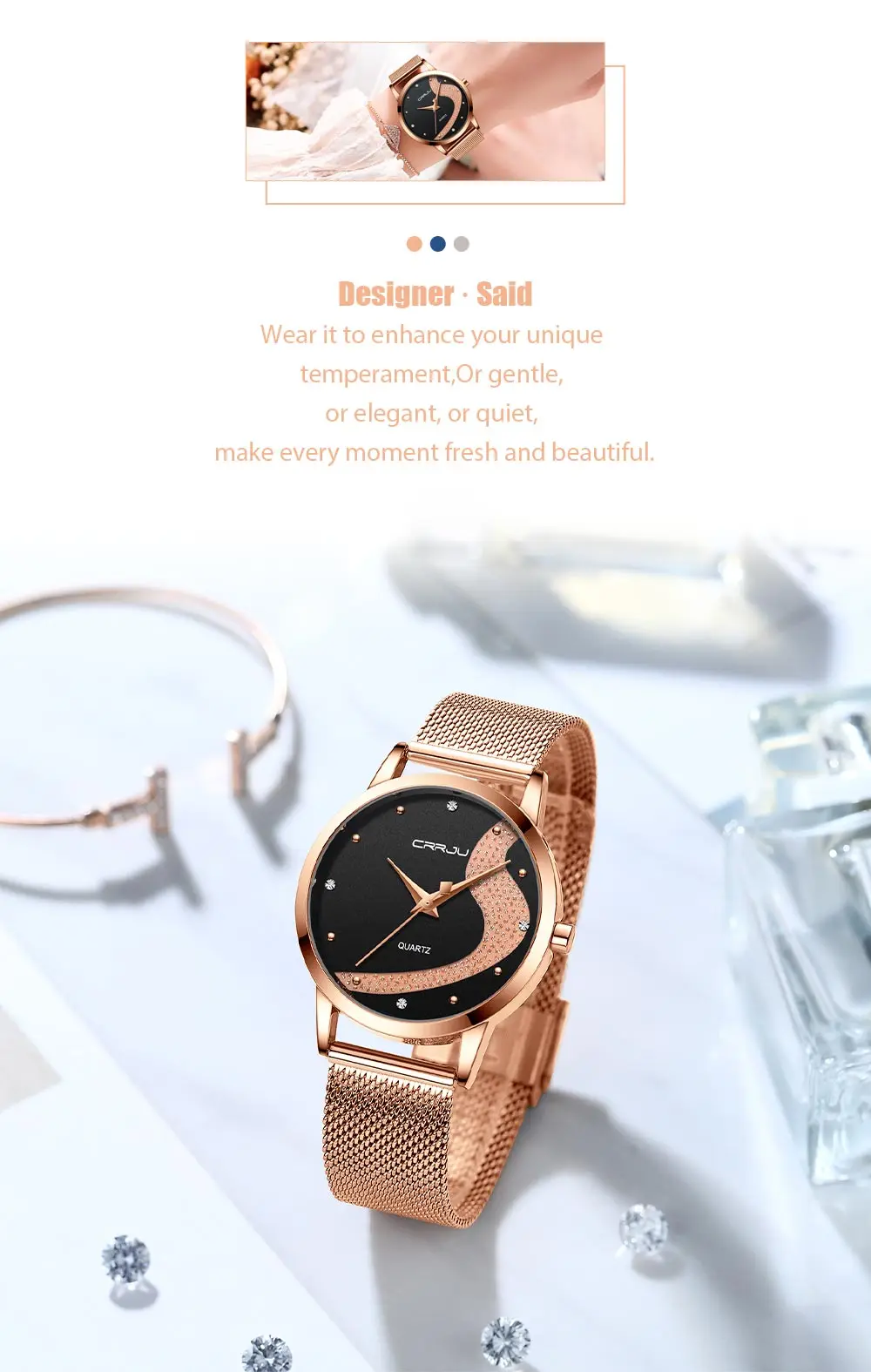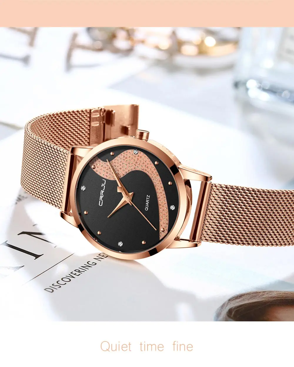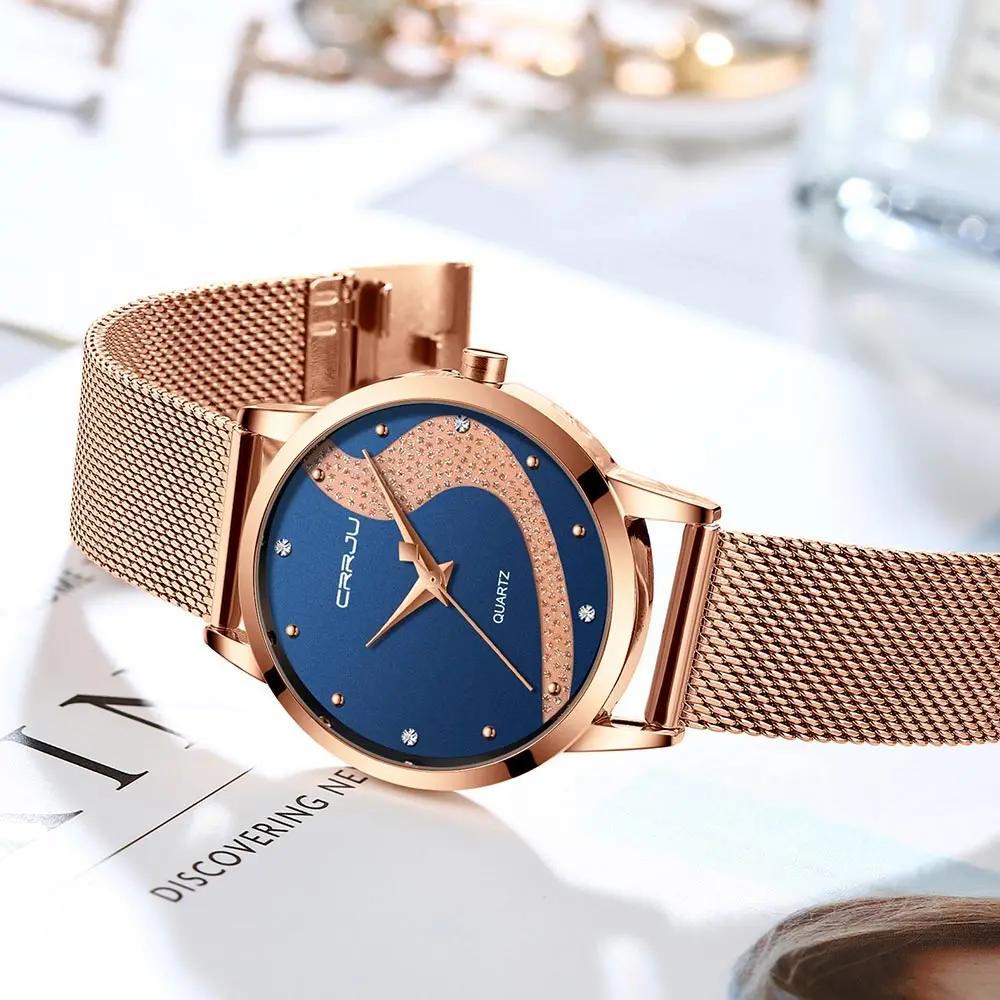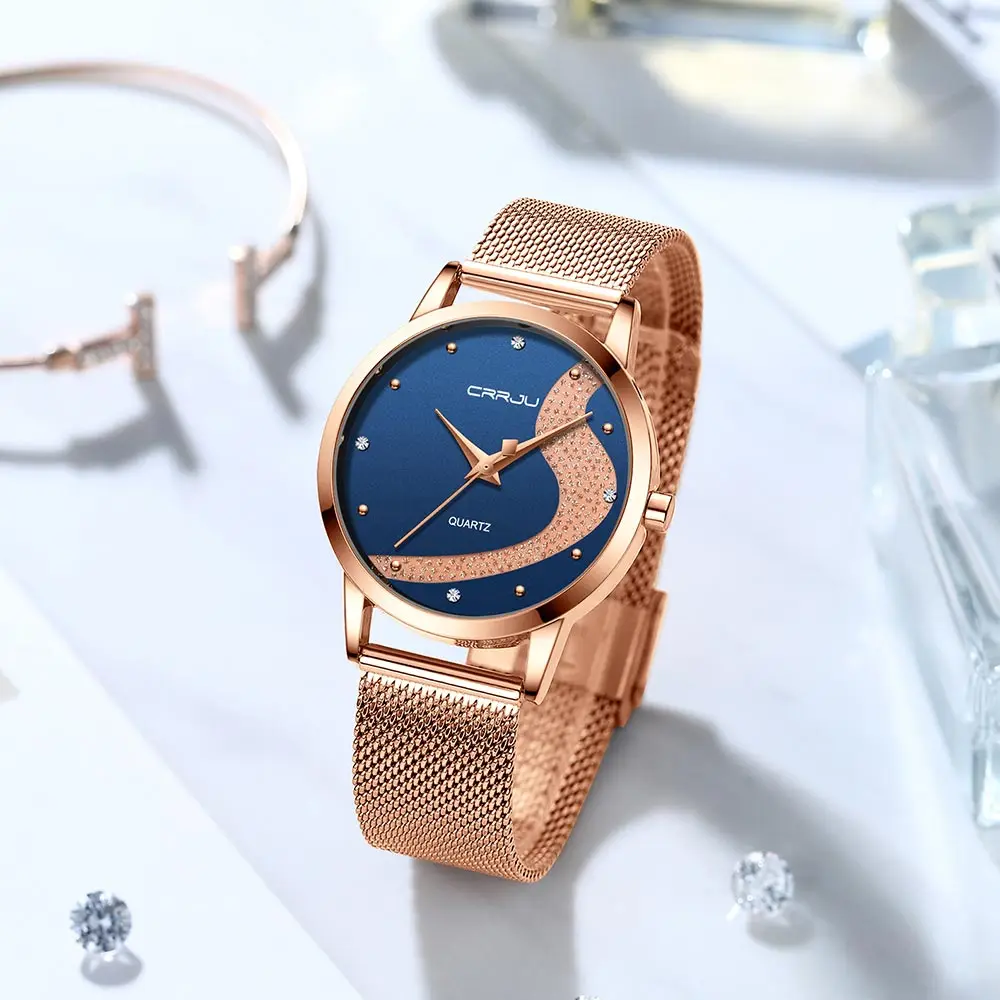 CRRJU Luxury Women’s Steel Mesh Waterproof Quartz Watch with Flower Design