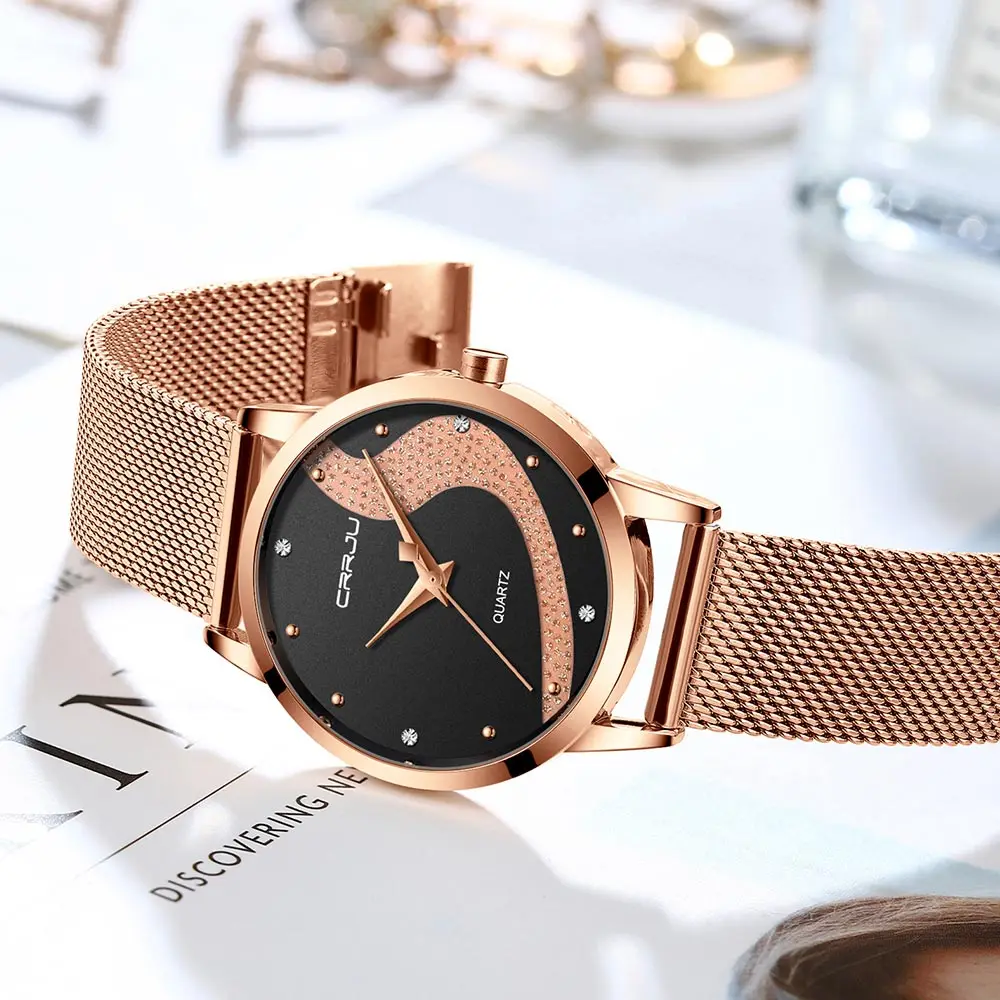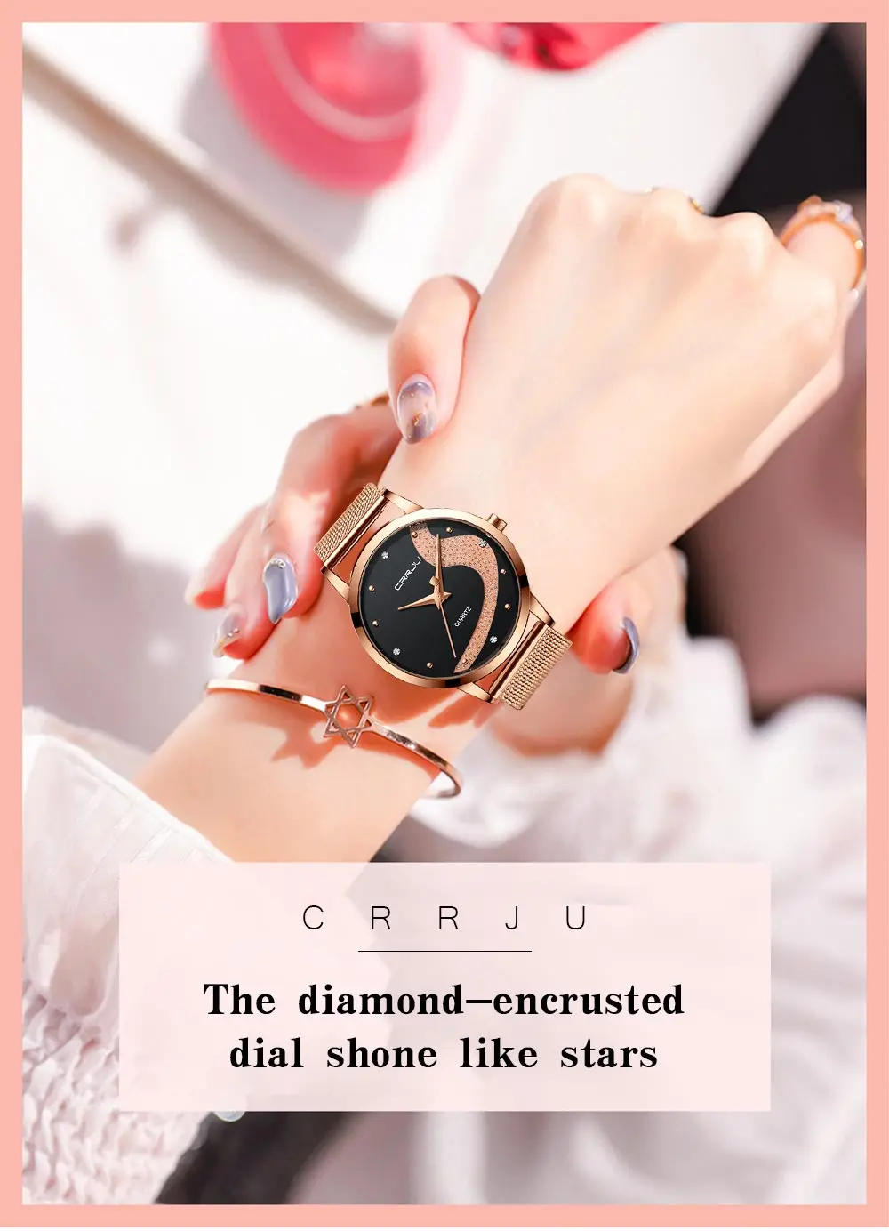 CRRJU Watch Women Fashion Dress Quartz Watches Lady Stainless Steel Waterproof Wristwatch Simple Girl Clock Relogio Feminino