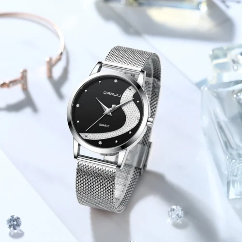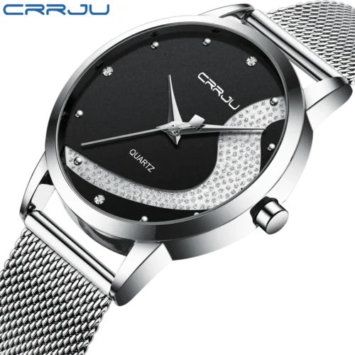 Be the first to review “CRRJU Luxury Women’s Steel Mesh Waterproof Quartz Watch with Flower Design” Cancel reply