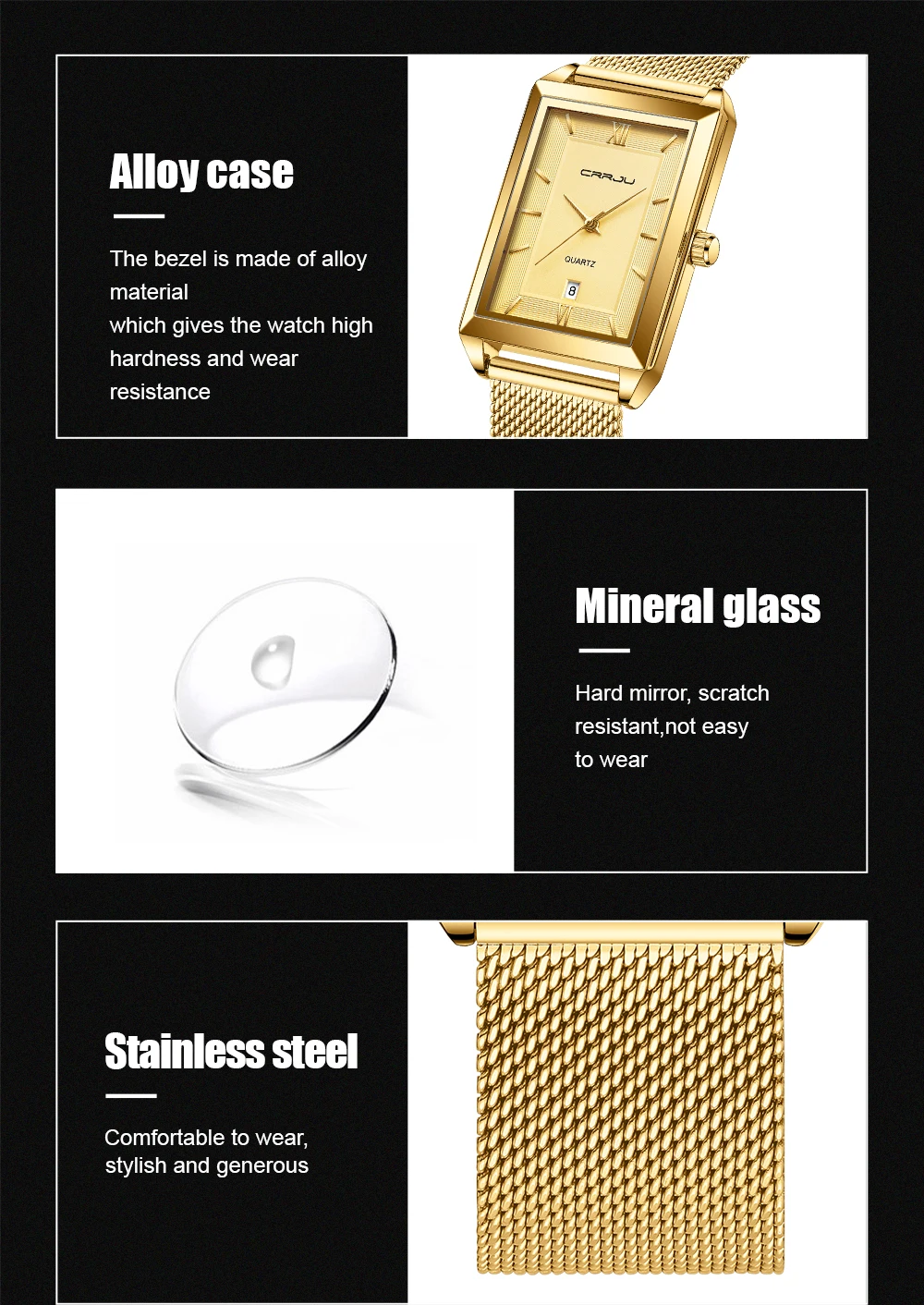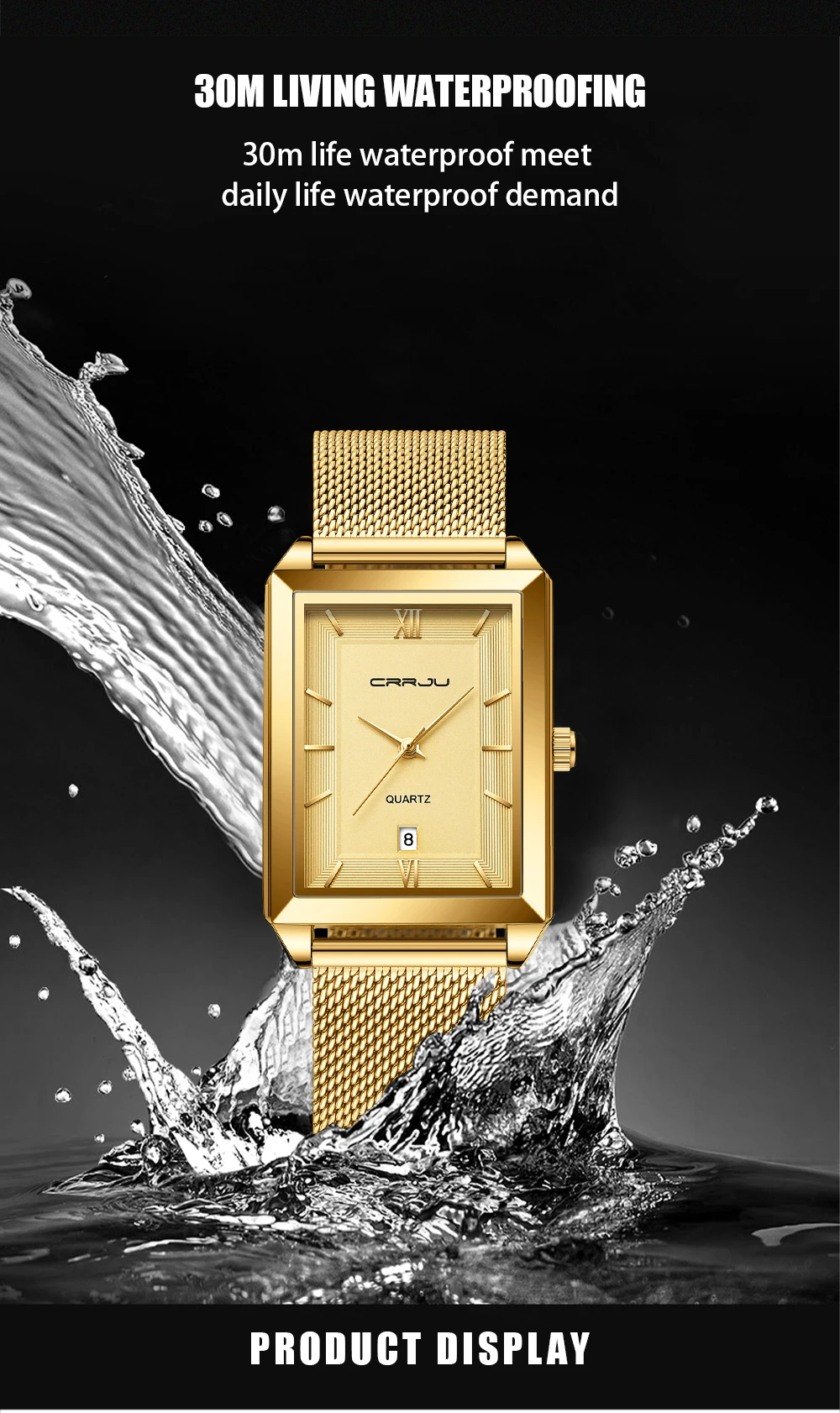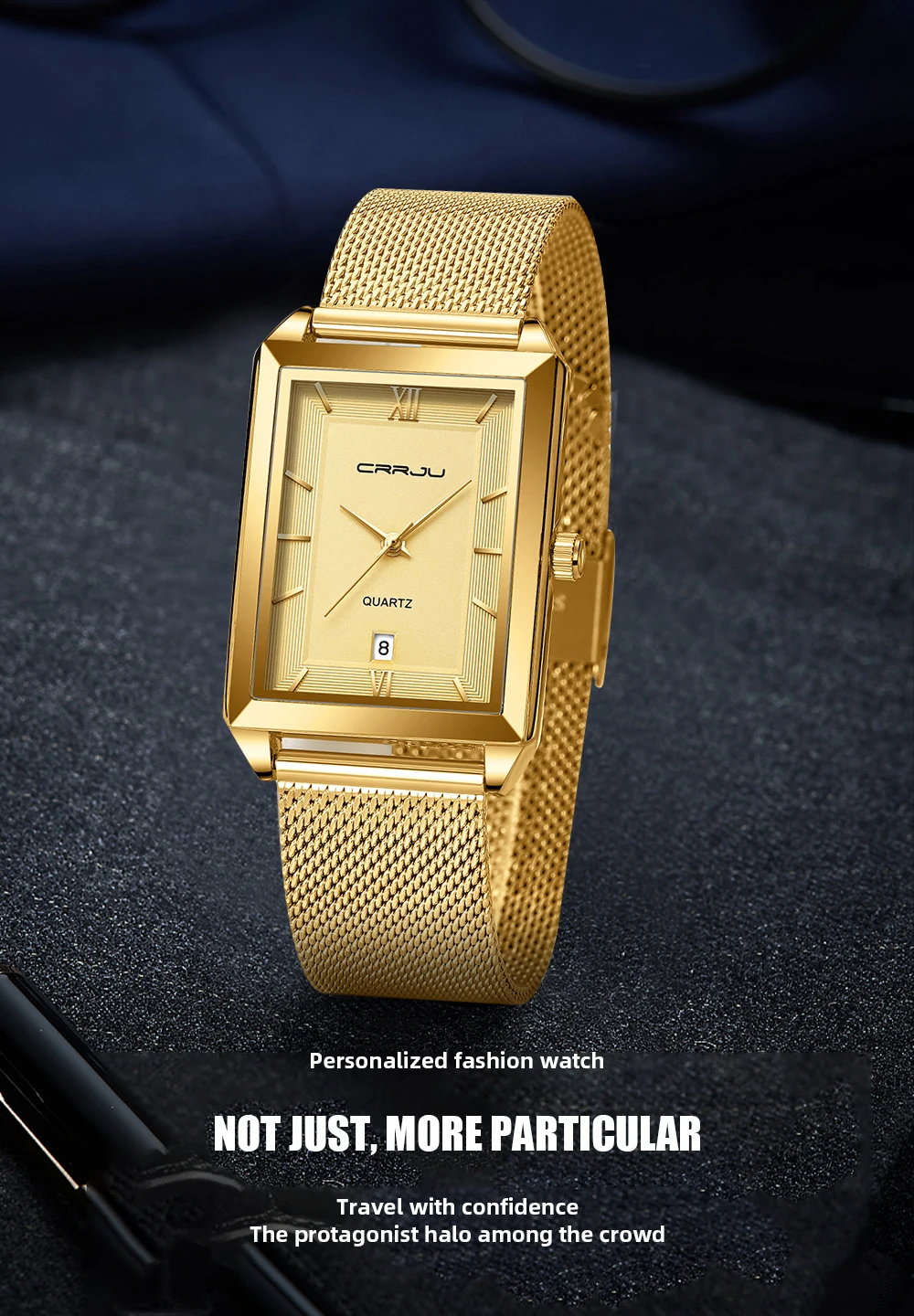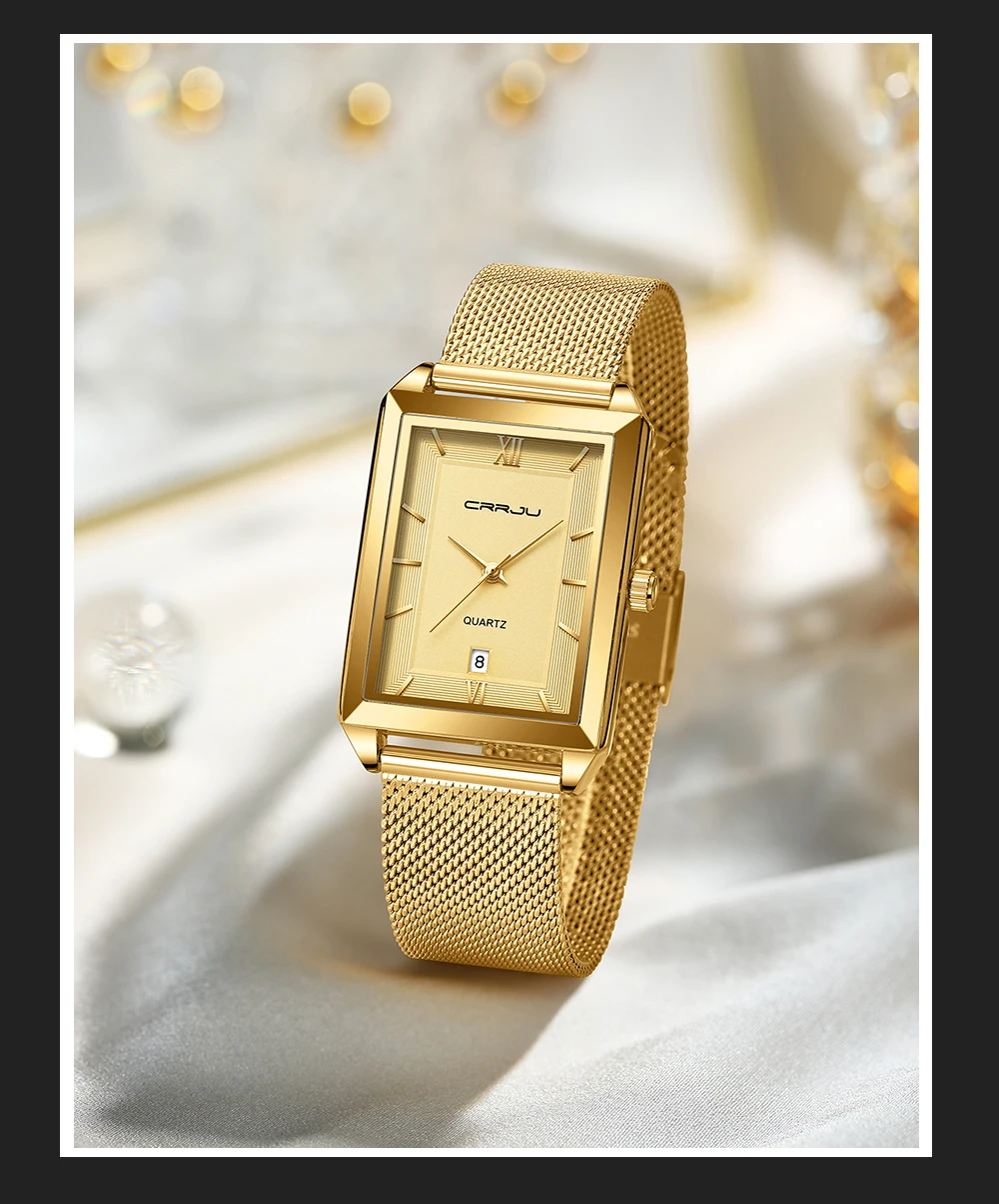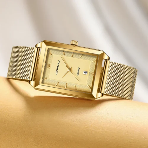 CRRJU Women’s Gold Stainless Steel Bracelet Watch – Creative Design