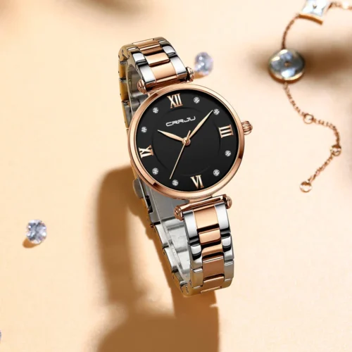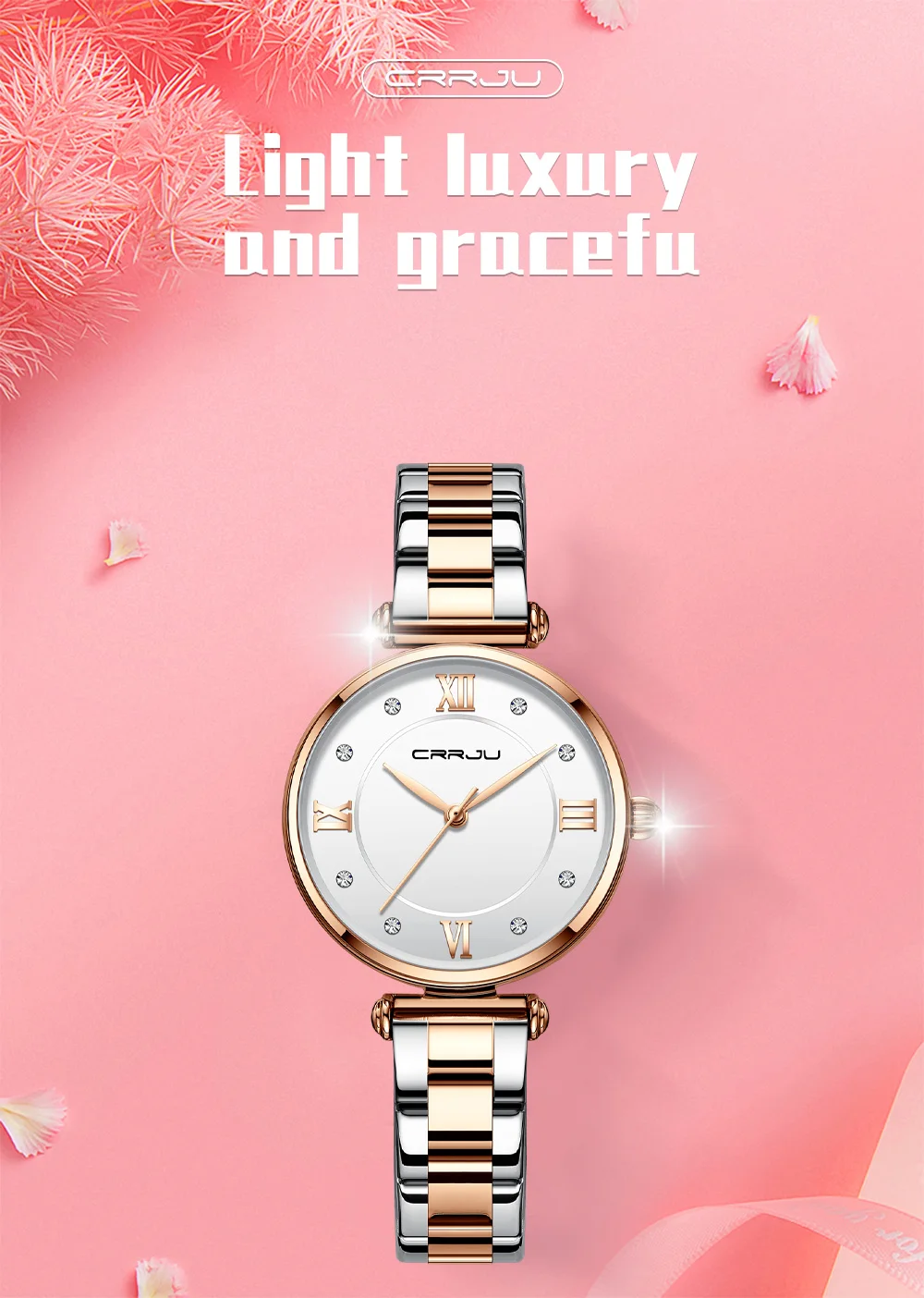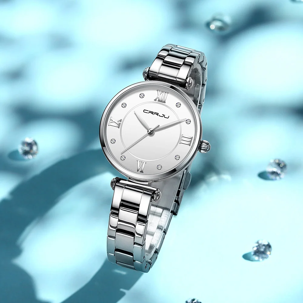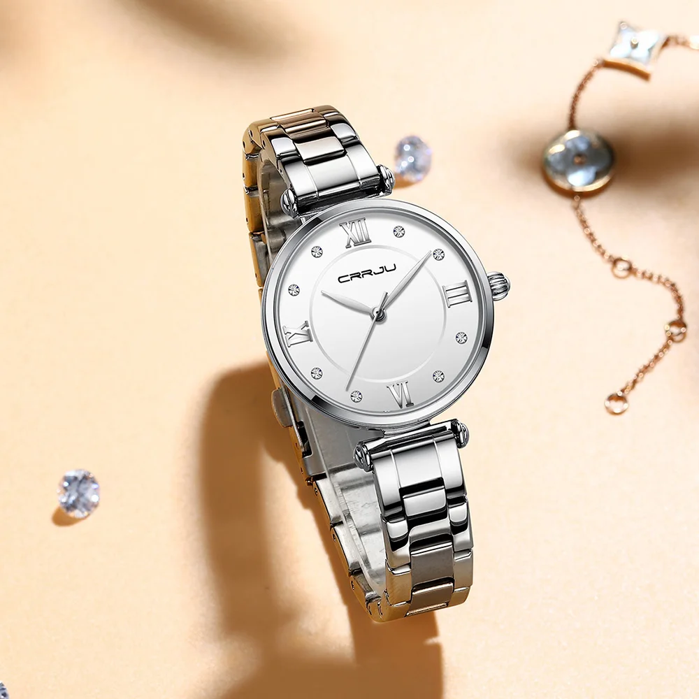 CRRJU Watch Women Fashion Dress Quartz Watches Lady Stainless Steel Waterproof Wristwatch Simple Girl Clock Relogio Feminino