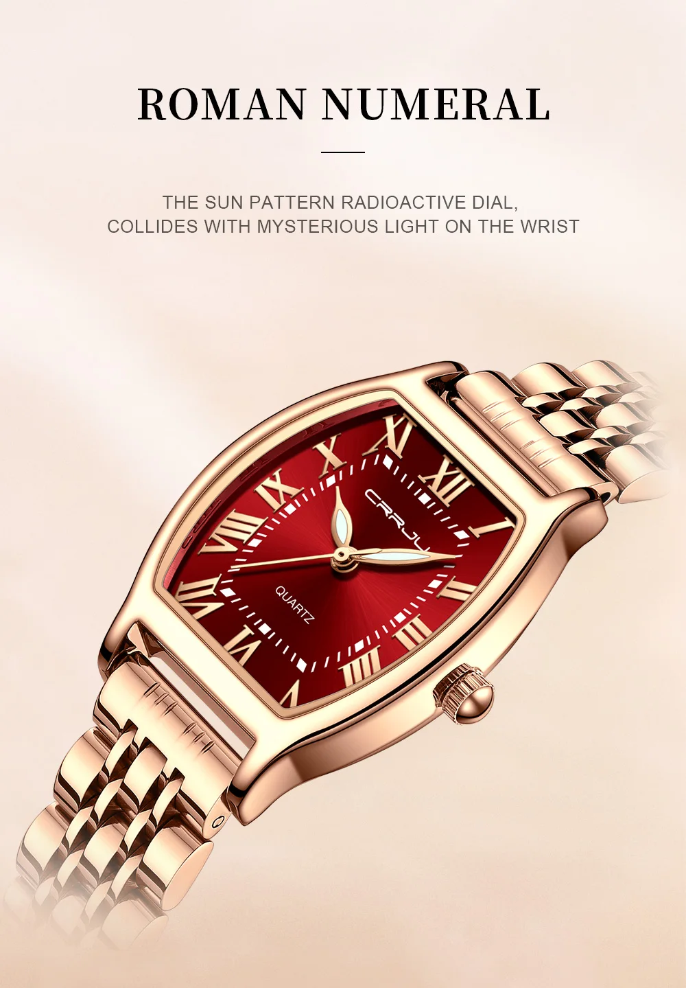 CRRJU Women’s Waterproof Square Quartz Watch with Steel Bracelet