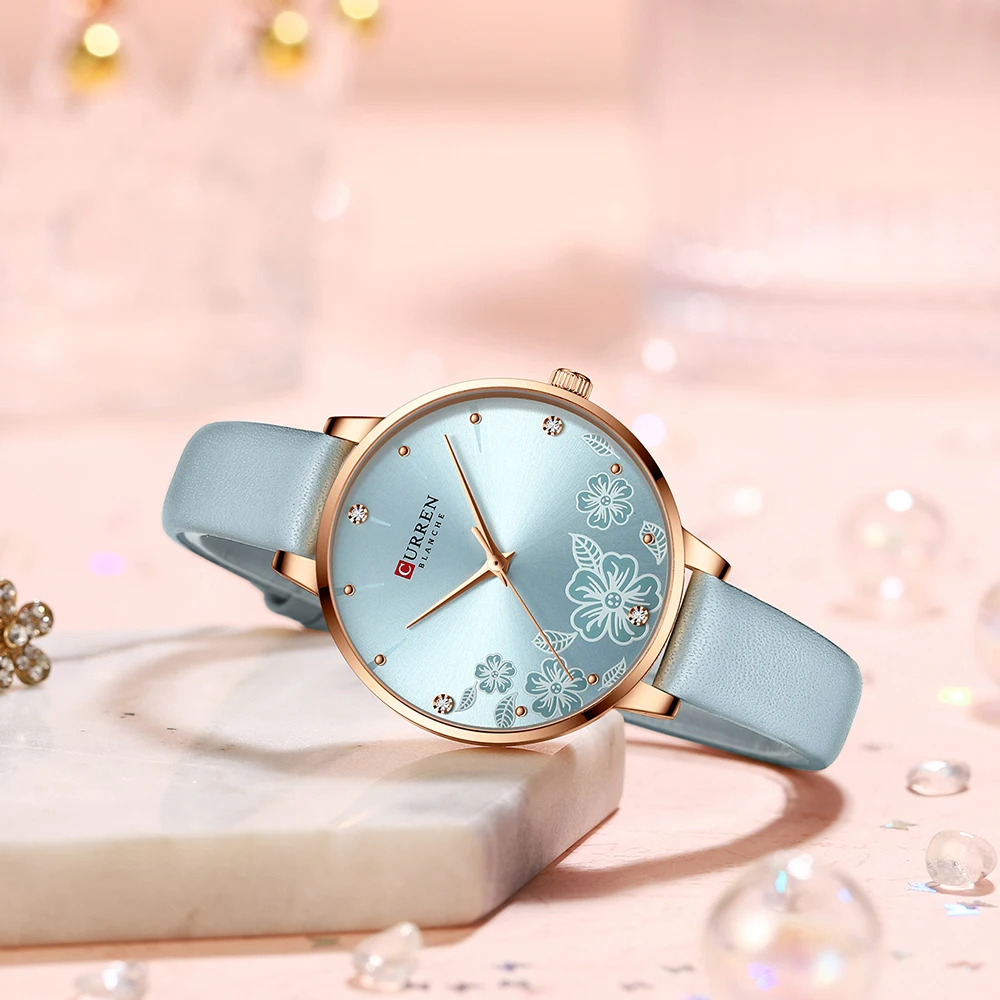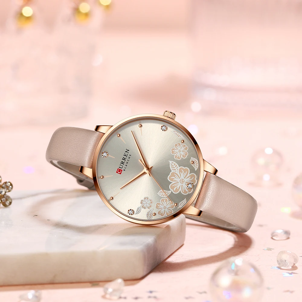 CURREN Women’s Leather Quartz Watch – Luxury Floral Dial Design