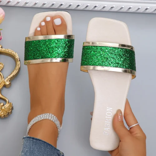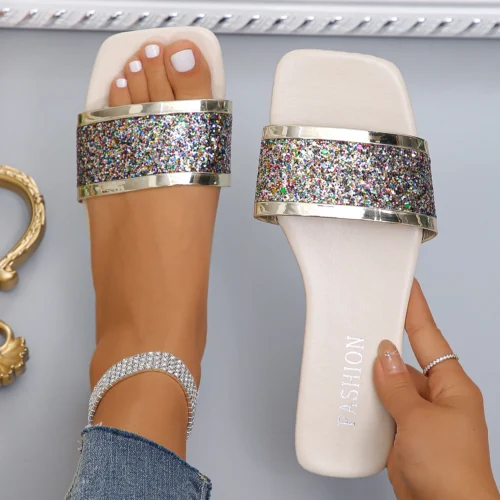 Plus Size Women’s Rhinestone Sandals – Elastic Band Open Toe Beach Shoes