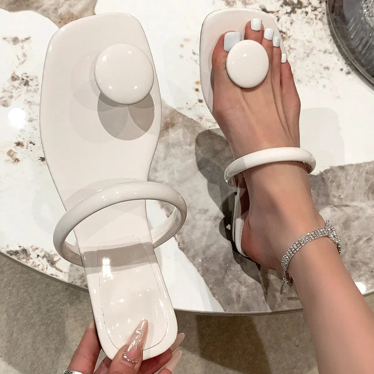 Designer Women’s Summer Slippers – T-Shaped Pinch Toe Low Heel Fashion Sandals