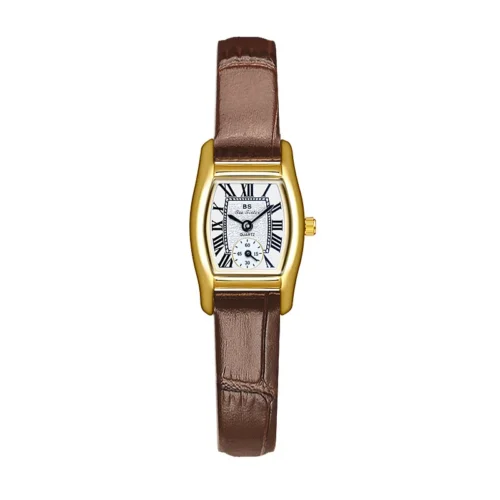 Elegant Vintage Women’s Rectangle Watch – Brown Leather Strap
