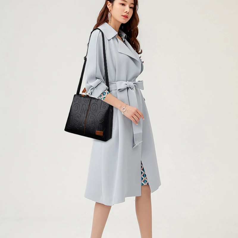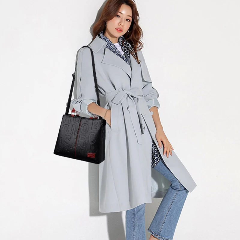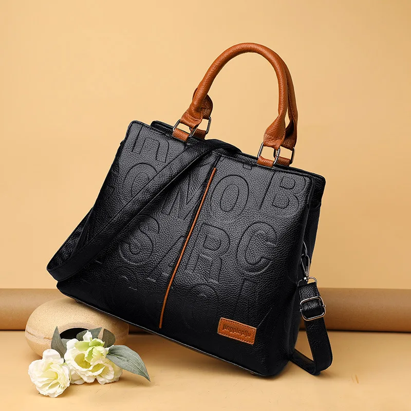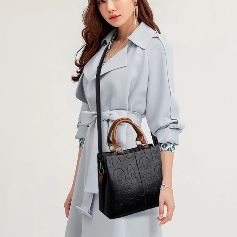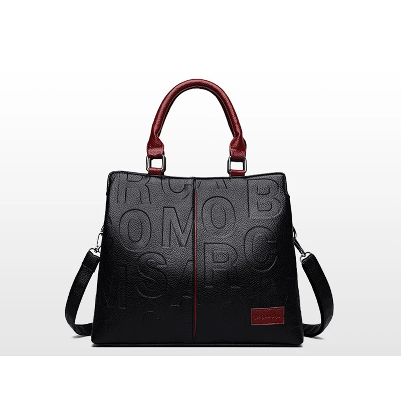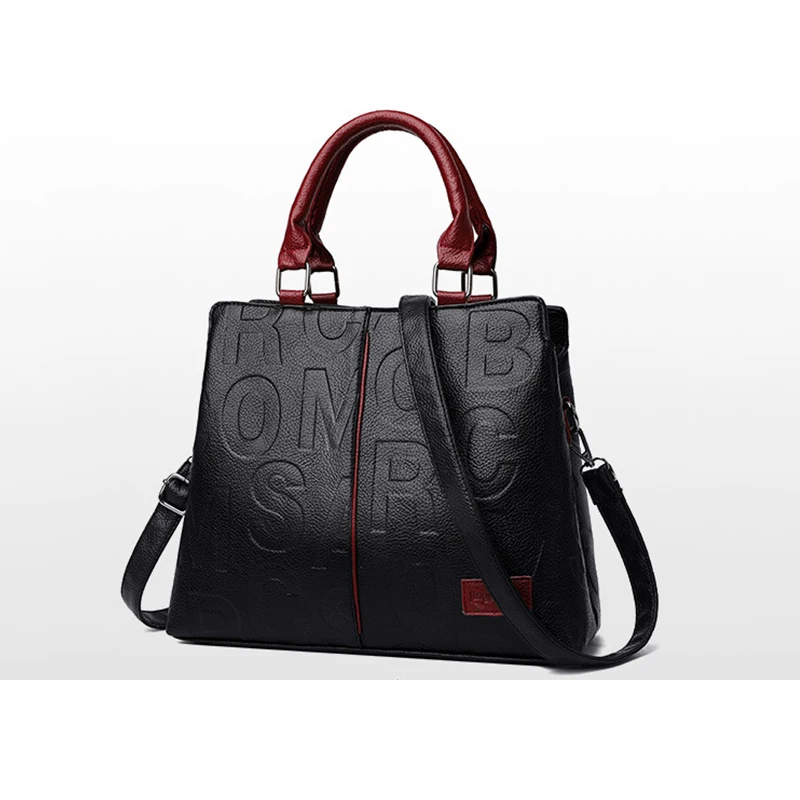 Fashion Letter Handle Bag Women PU Leather Shoulder Bag Large Capacity