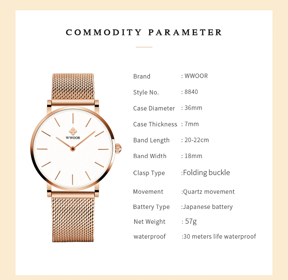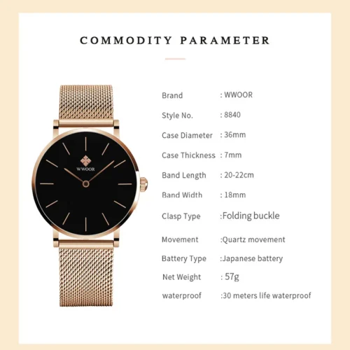 Be the first to review “Fashion Women Watches – WWOOR Luxury Brand Waterproof Stainless Steel Quartz Wristwatch for Women, Relogio Feminino”