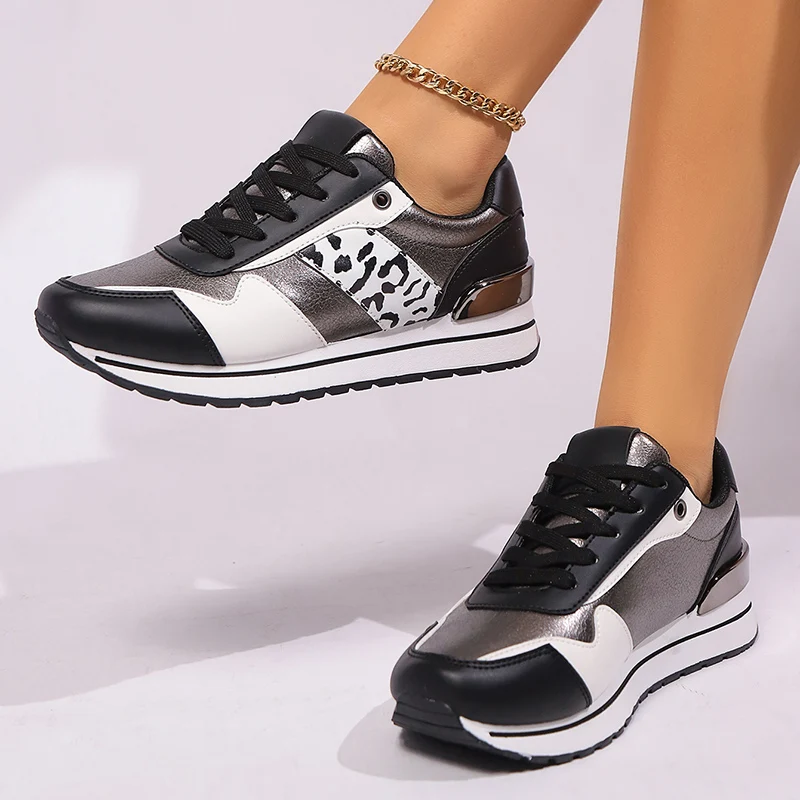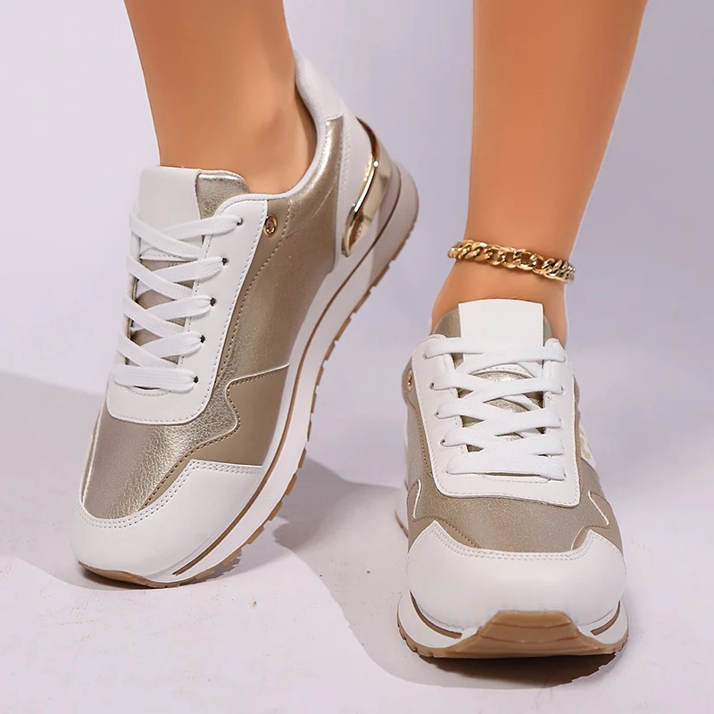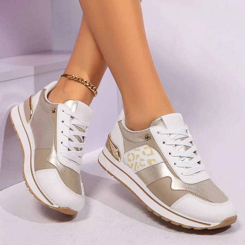 Gold Leopard Women’s Lightweight Platform Sneakers – Lace-Up Casual Outdoor Flats