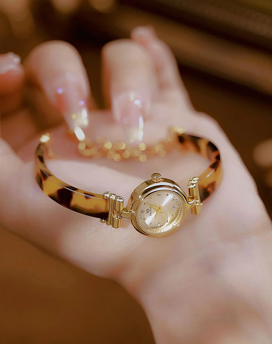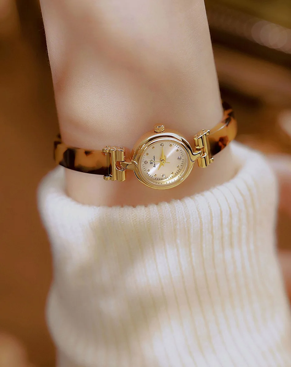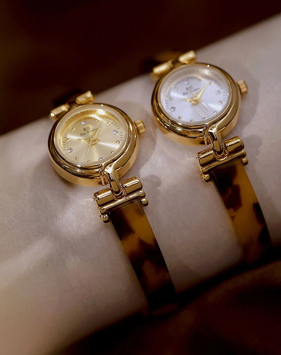 Golden Retro Quartz Watches for Women, Luxury Brand Vintage Bracelet Wristwatch