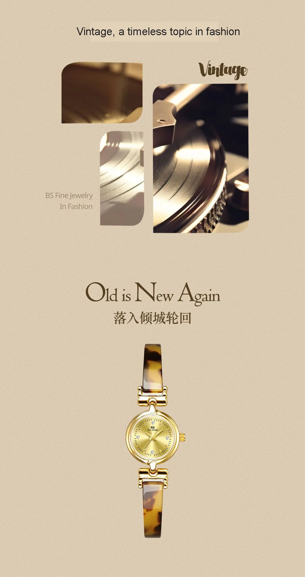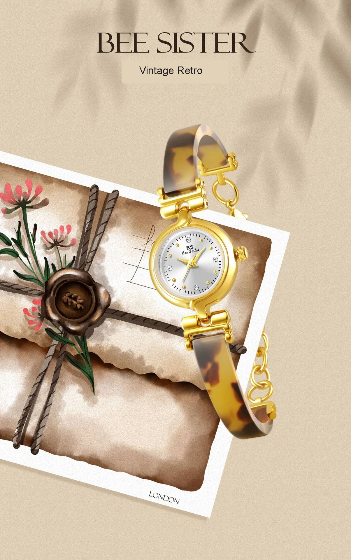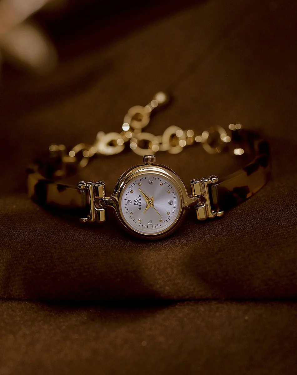 Golden Retro Quartz Watches for Women, Luxury Brand Vintage Bracelet Wristwatch