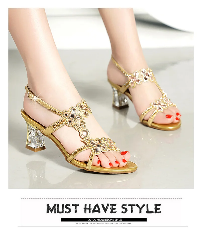 High Heel Rhinestone Sandals for Women – Crystal Diamond Fish Mouth Sexy Shoes