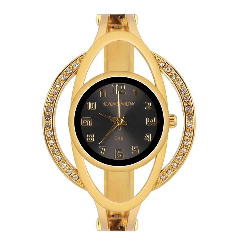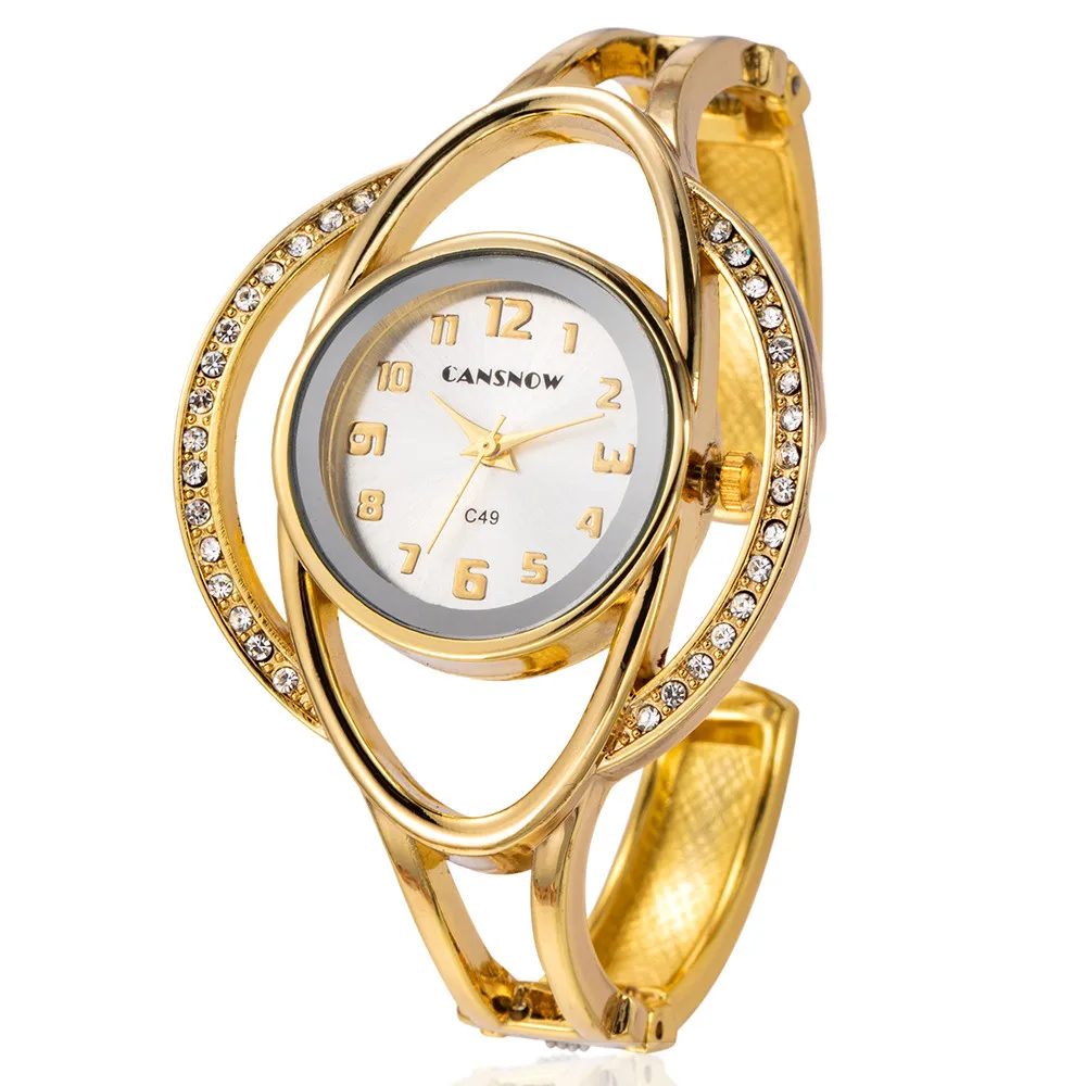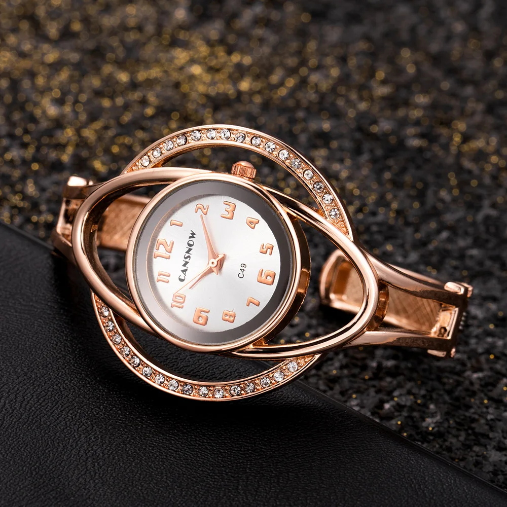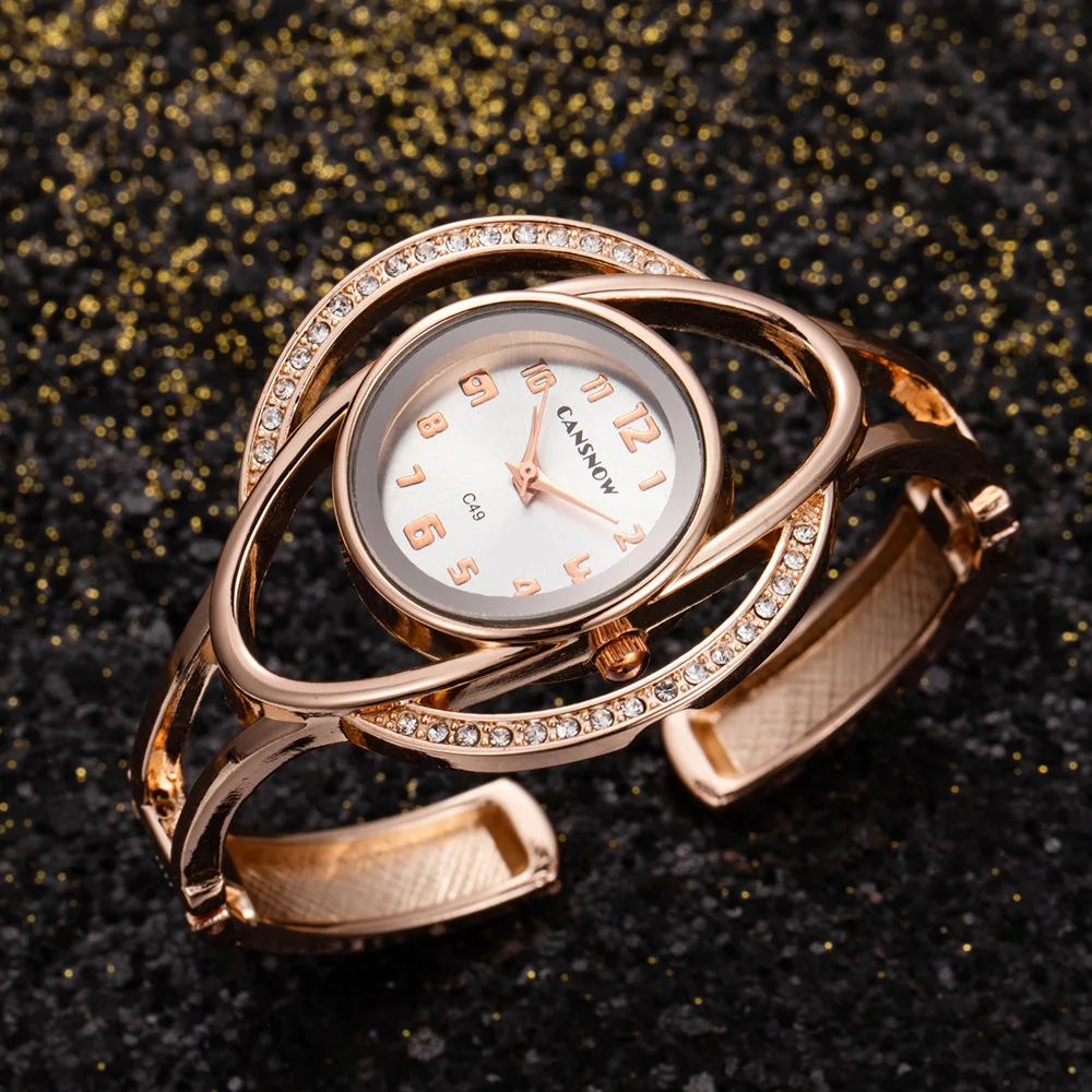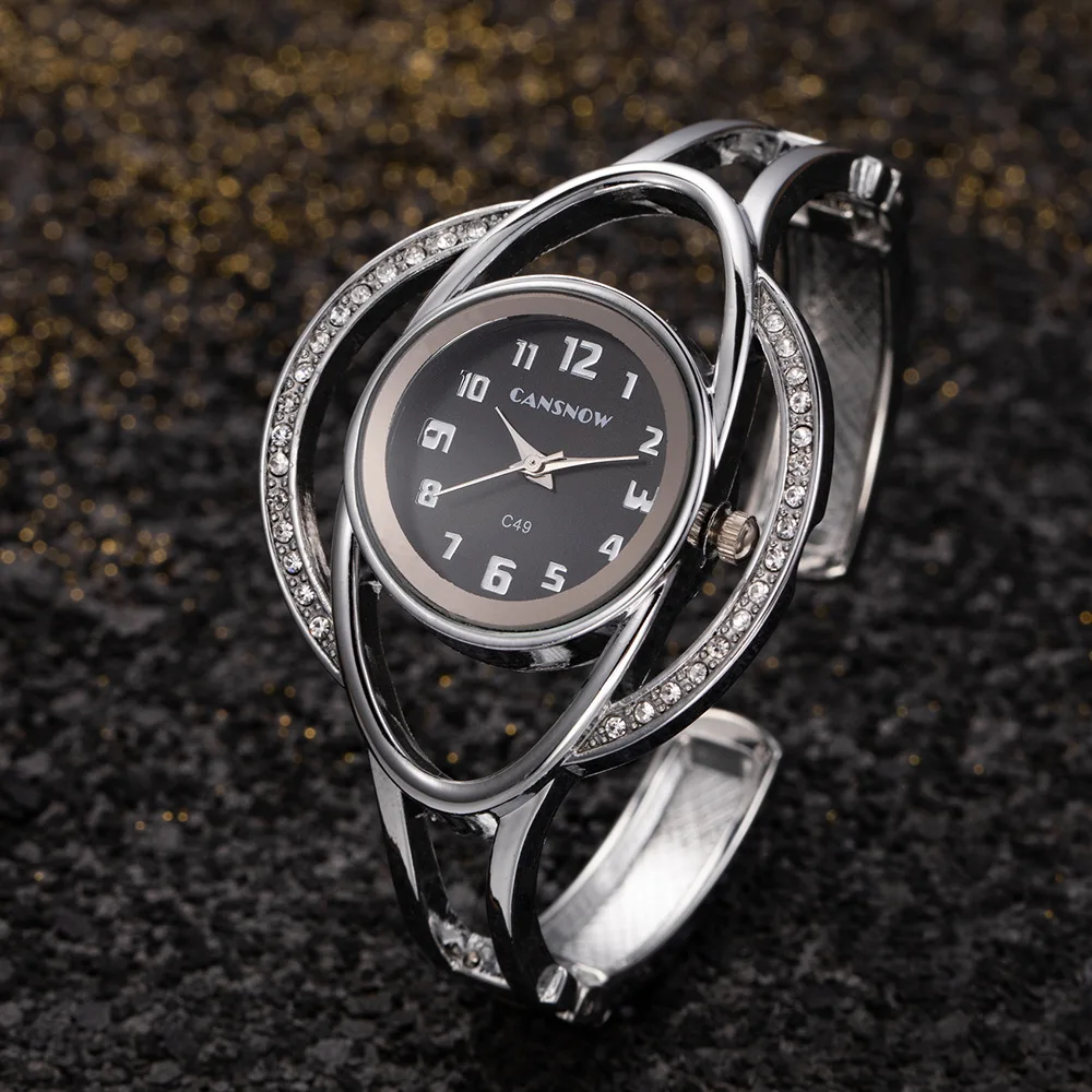Women’s Irregular Shape Rhinestone Quartz Watch with Sun Pattern Dial