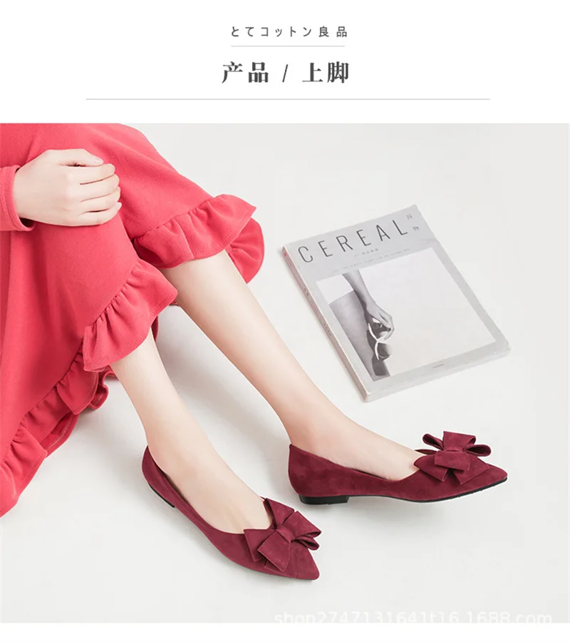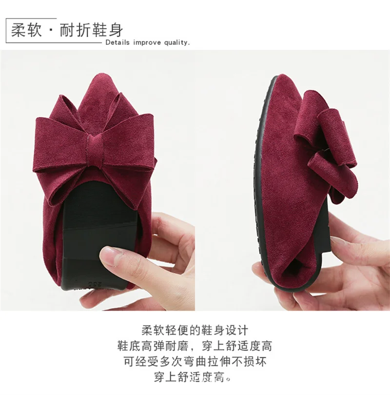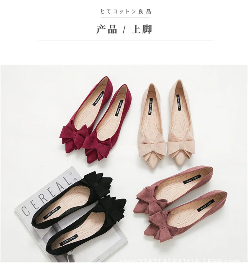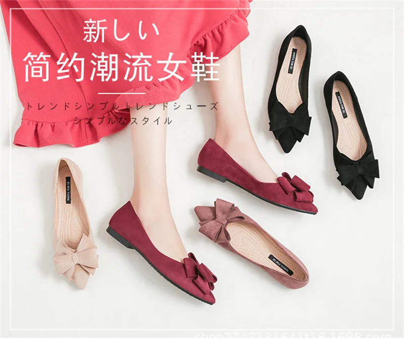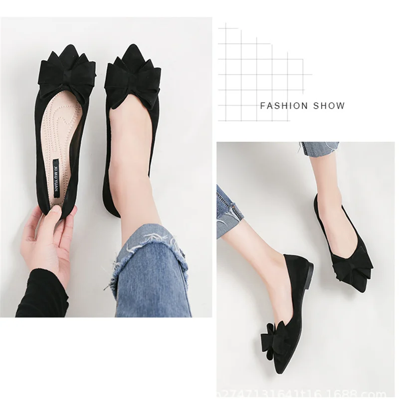 Large Size Spring Flats for Women – Bow Butterfly-Knot Pointed Toe Ballerina Shoes
