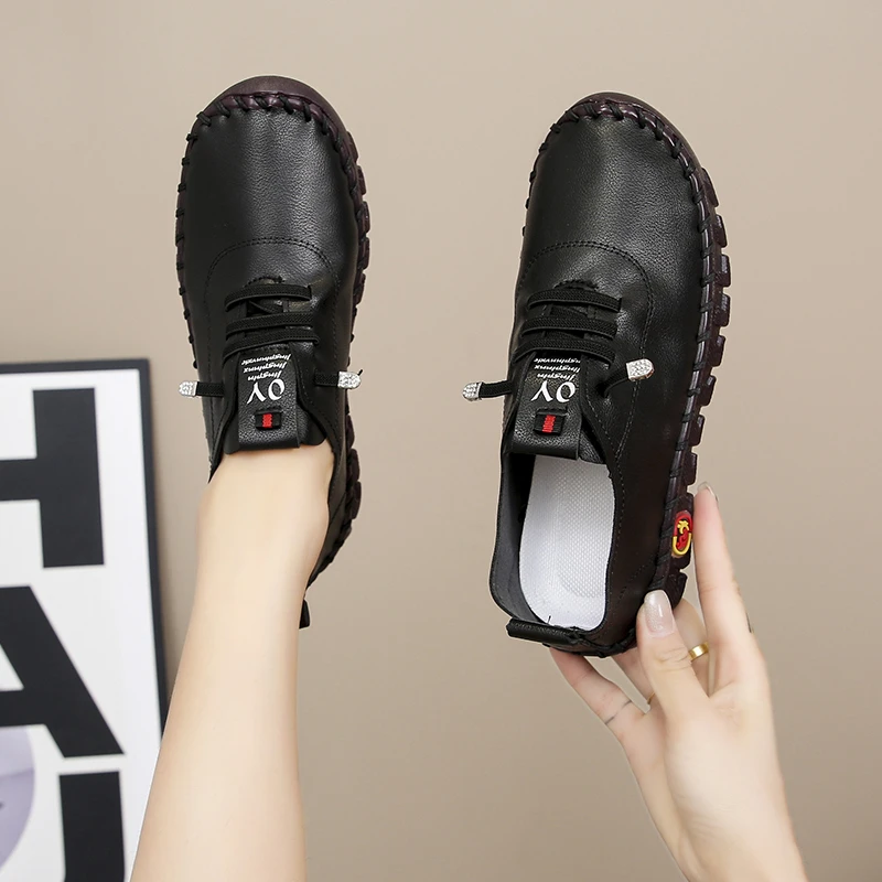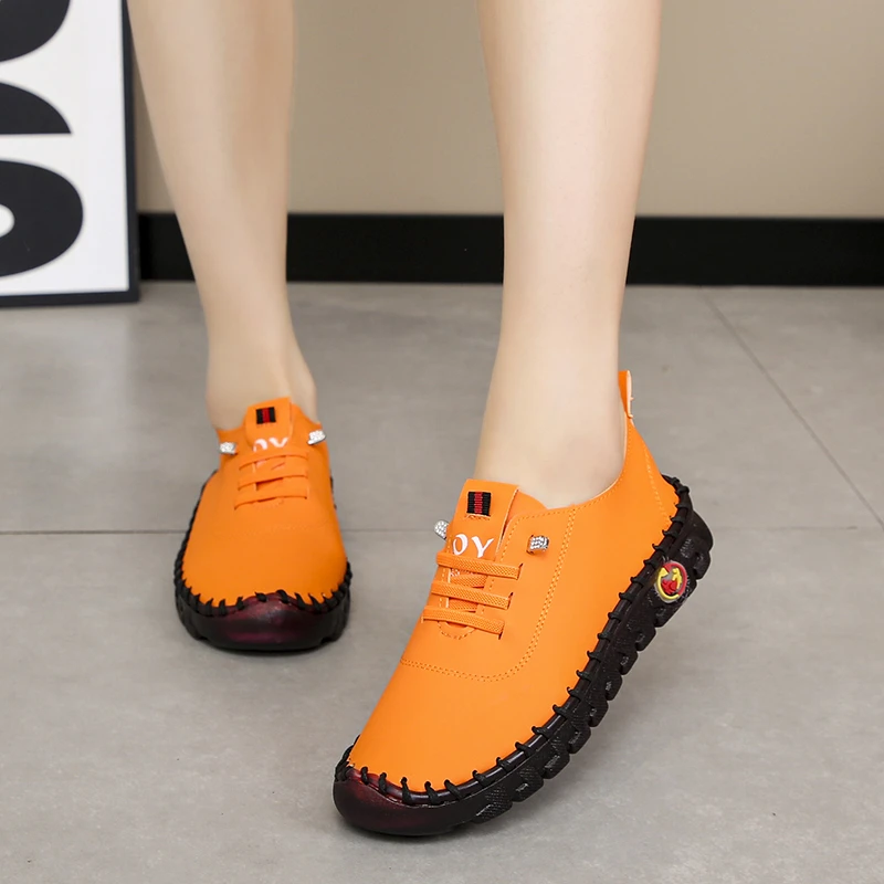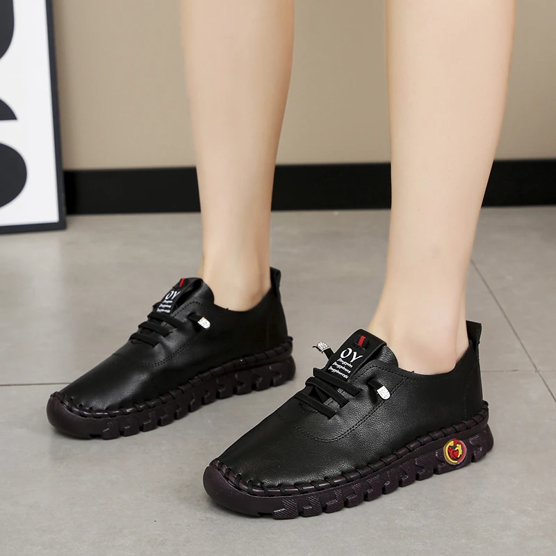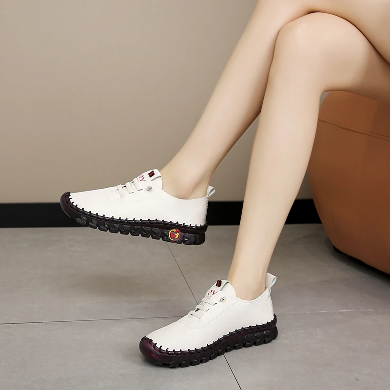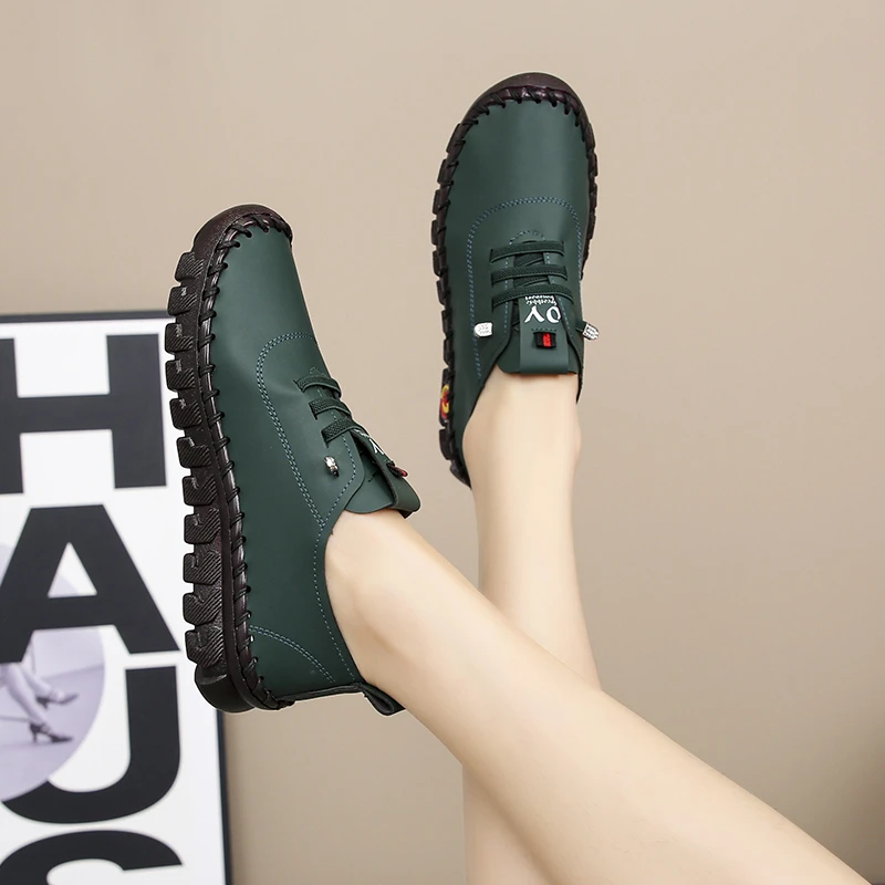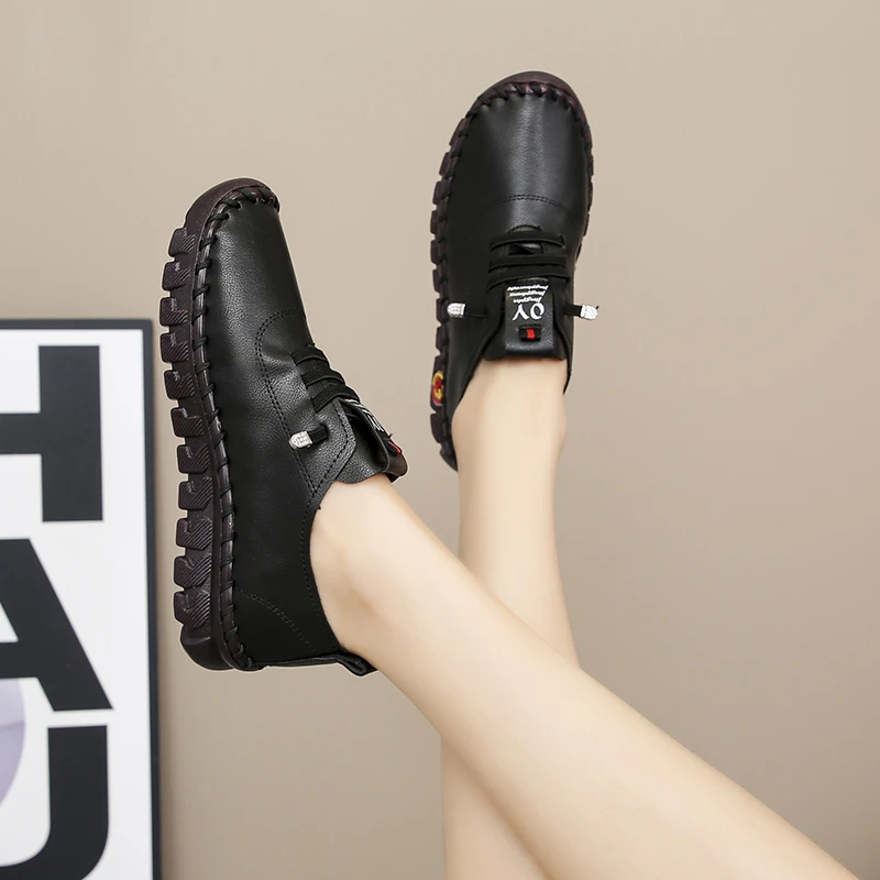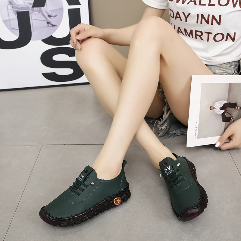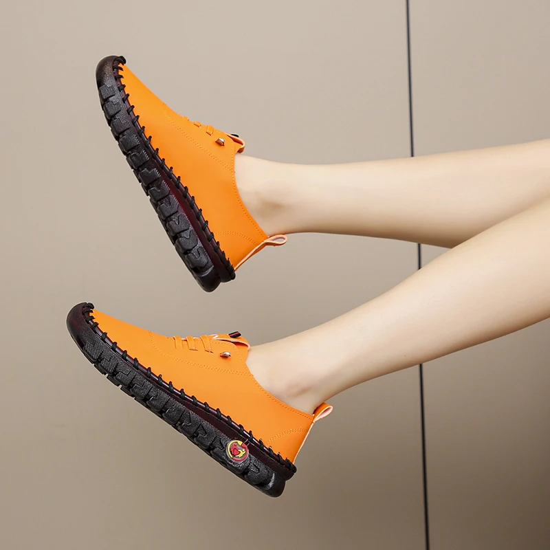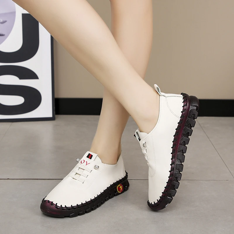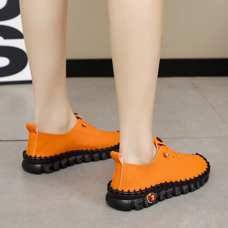 Leisure Leather Women’s Flat Shoes – Anti-Slip Lace-Up Round Toe Casual Sneakers