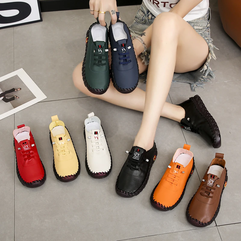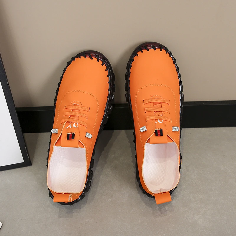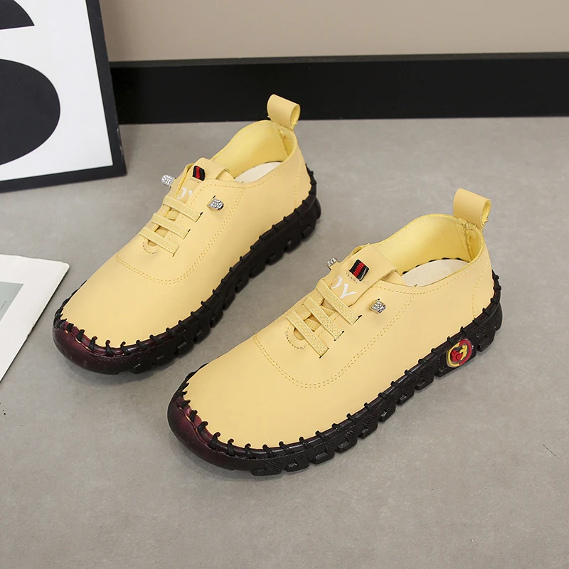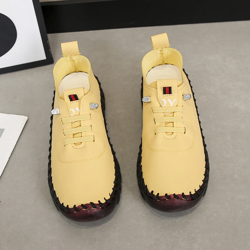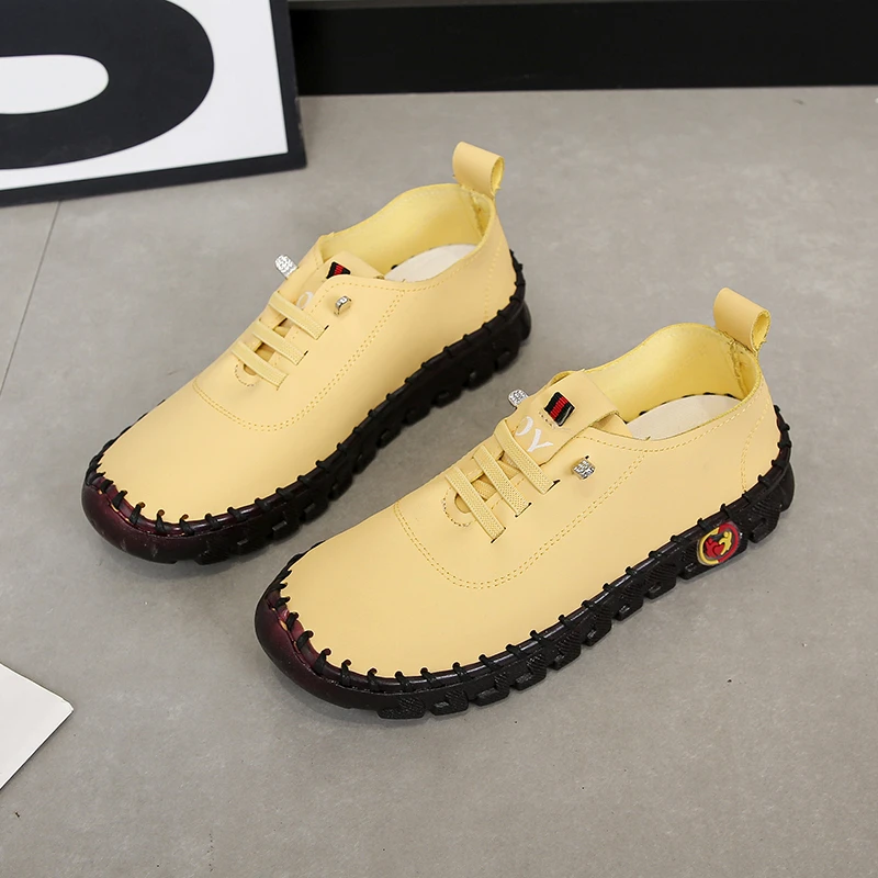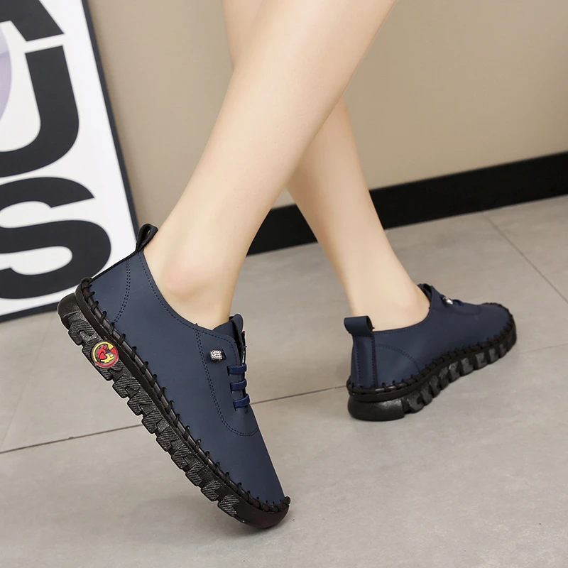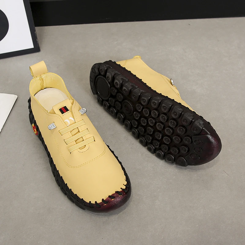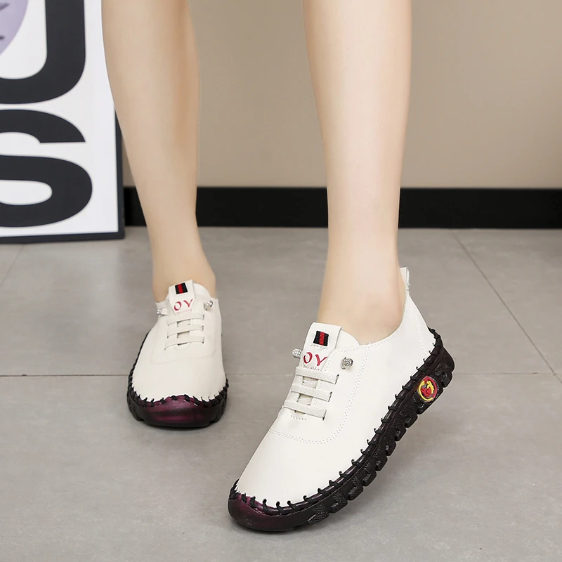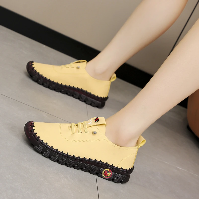 Leisure Leather Women’s Flat Shoes – Anti-Slip Lace-Up Round Toe Casual Sneakers
