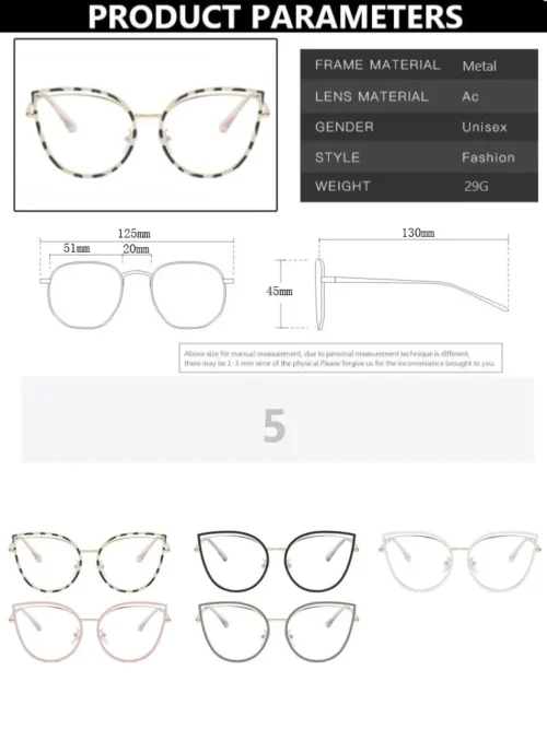 - Style: Cat eye glasses frame