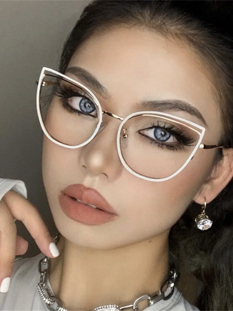 Luxury Cat Eye Computer Glasses – Clear Hollow Metal Frame for Women