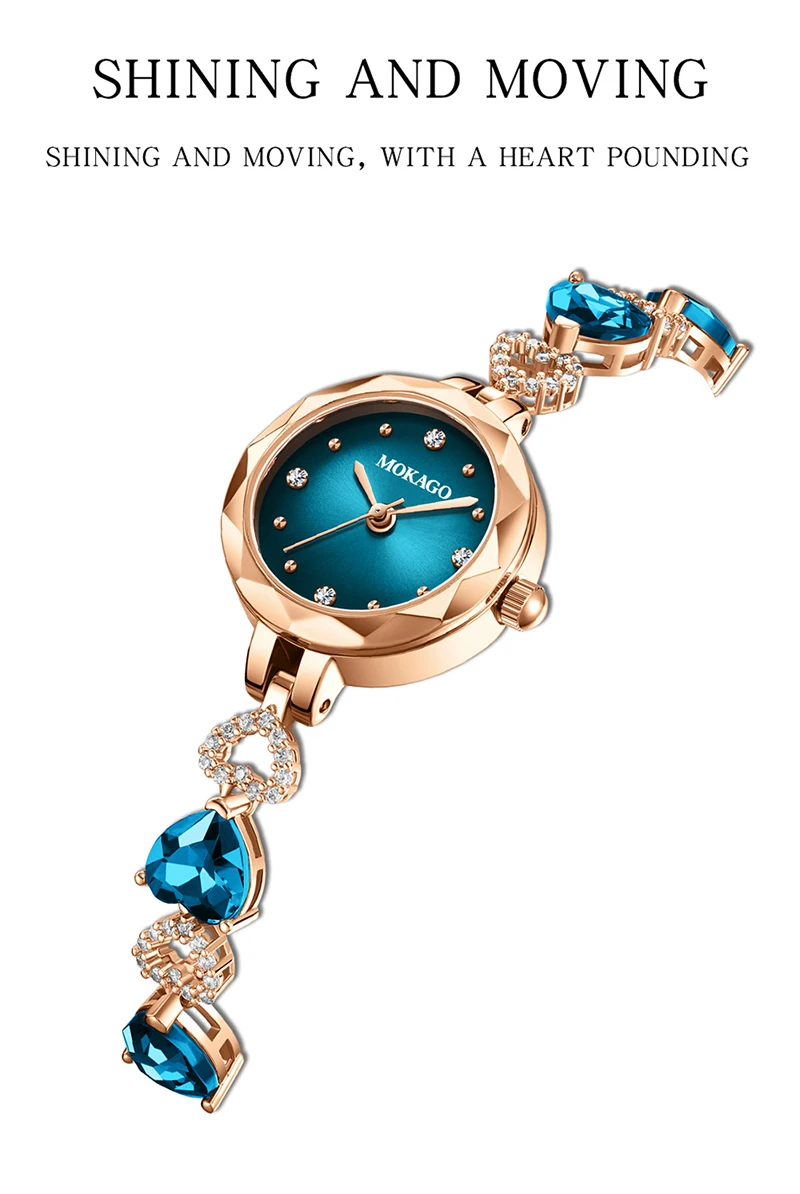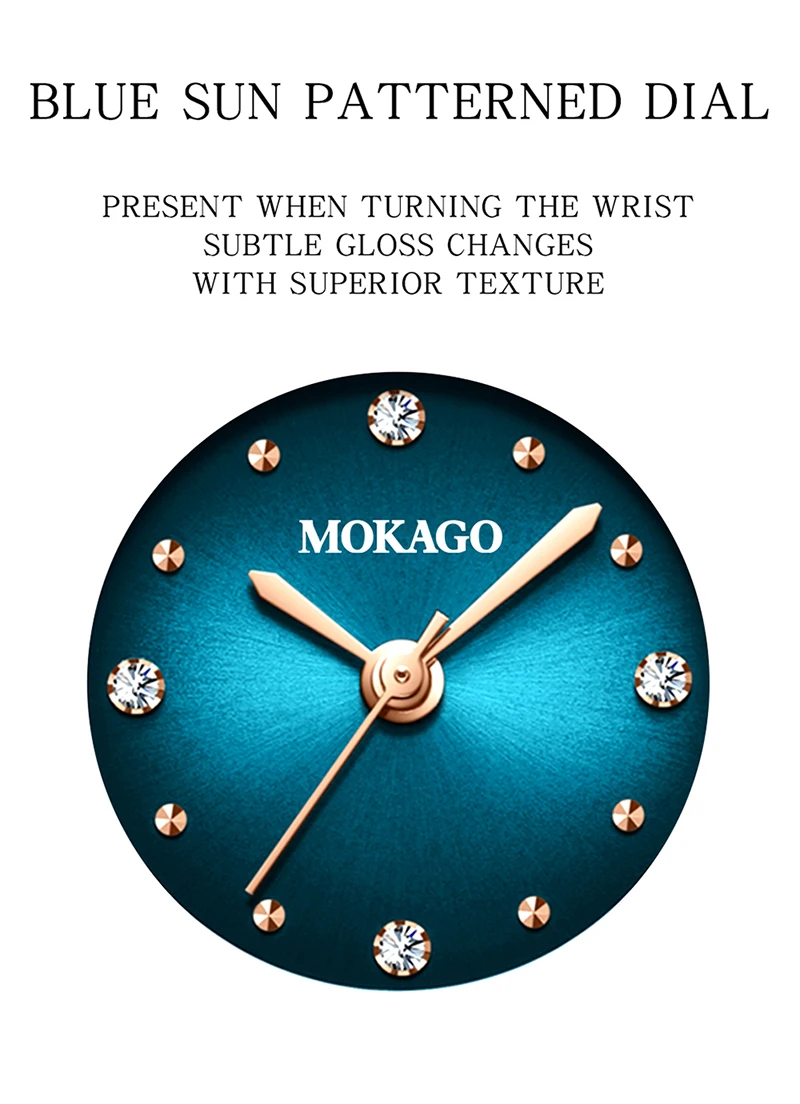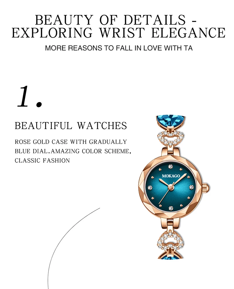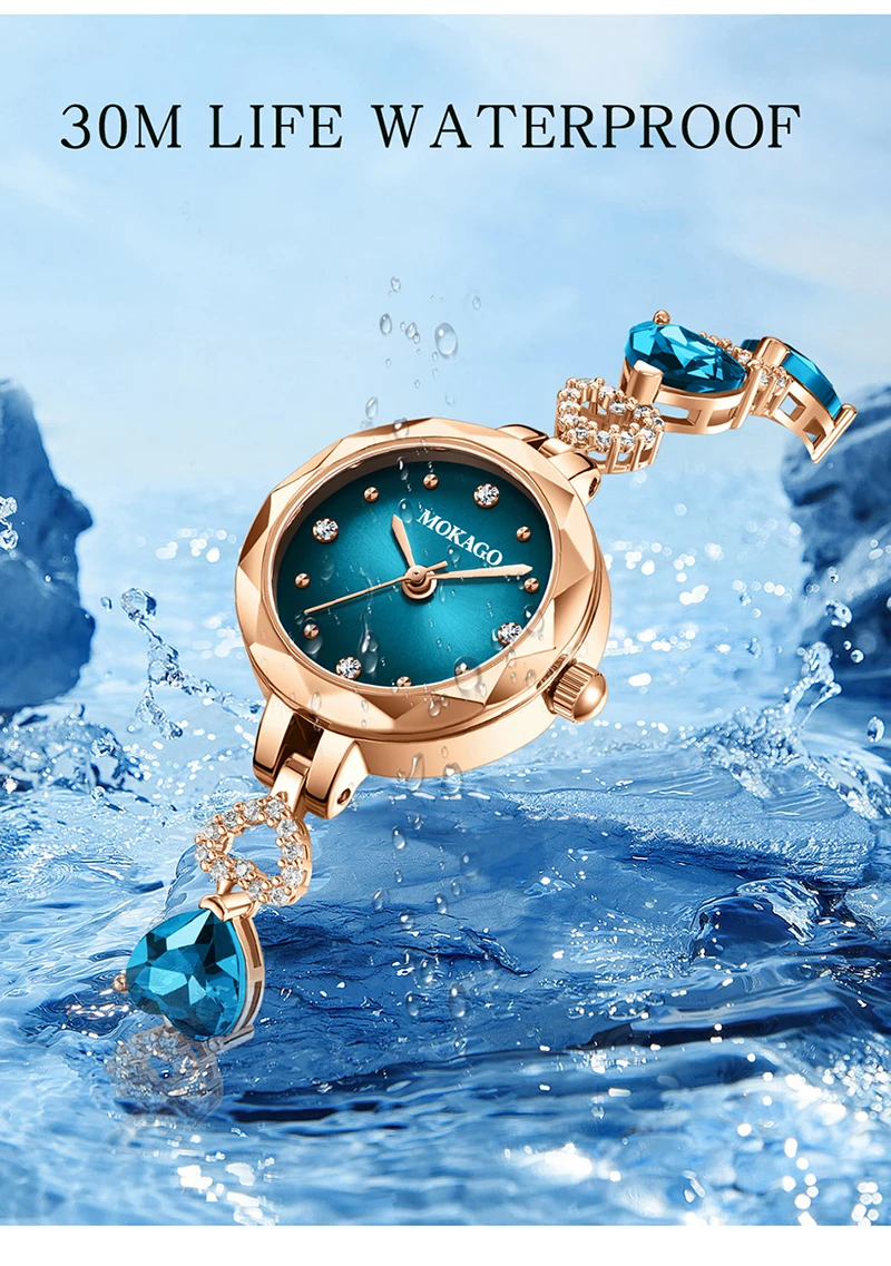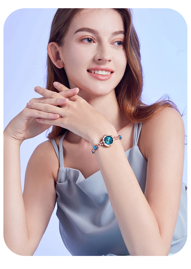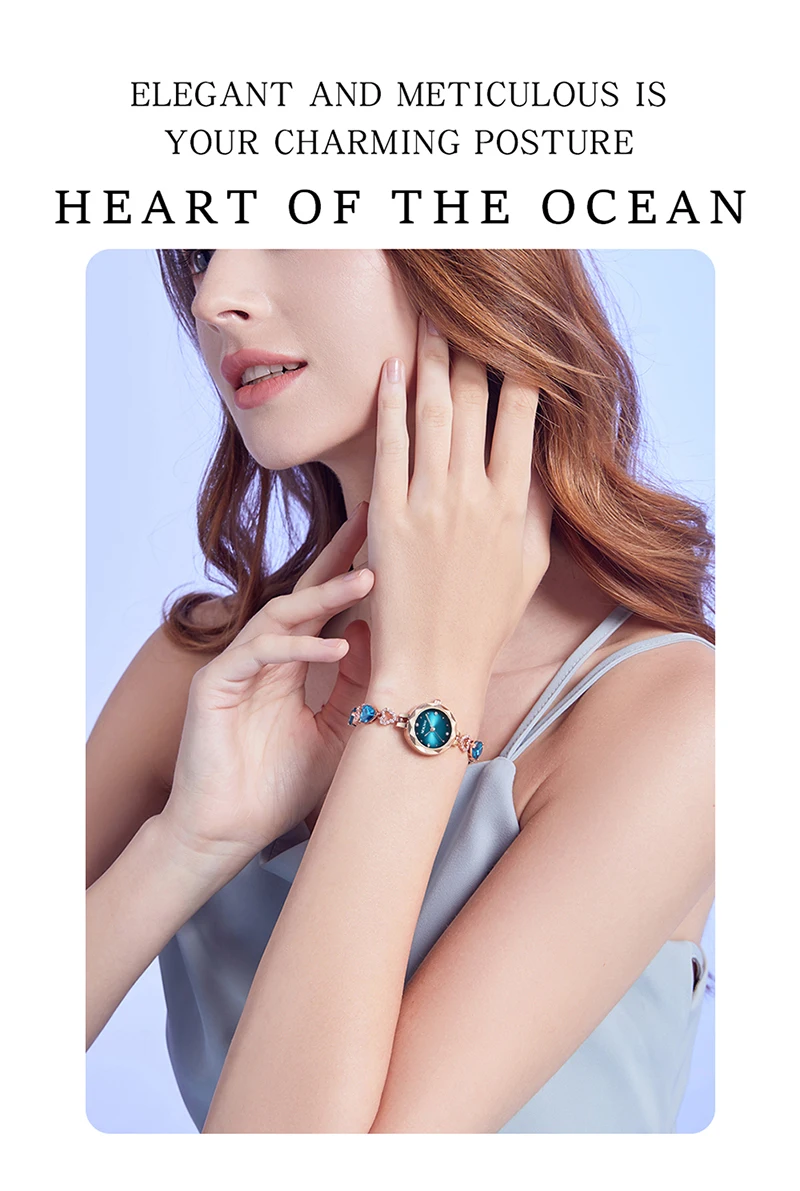 This watch boasts a luxurious design with its rose gold top brand and charming blue sea motif, perfect for fashion-conscious women.