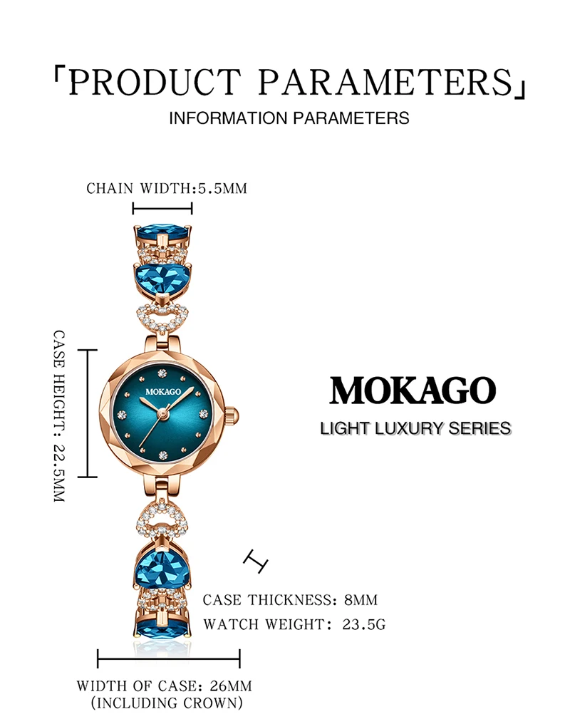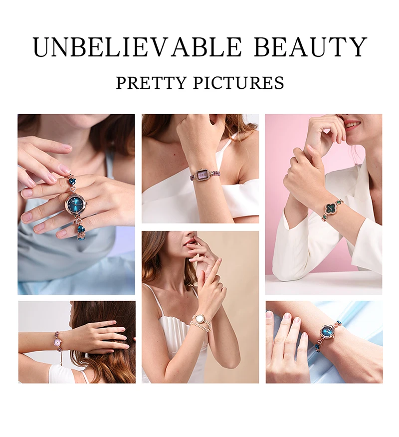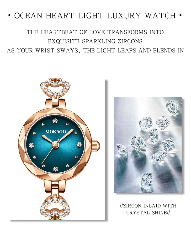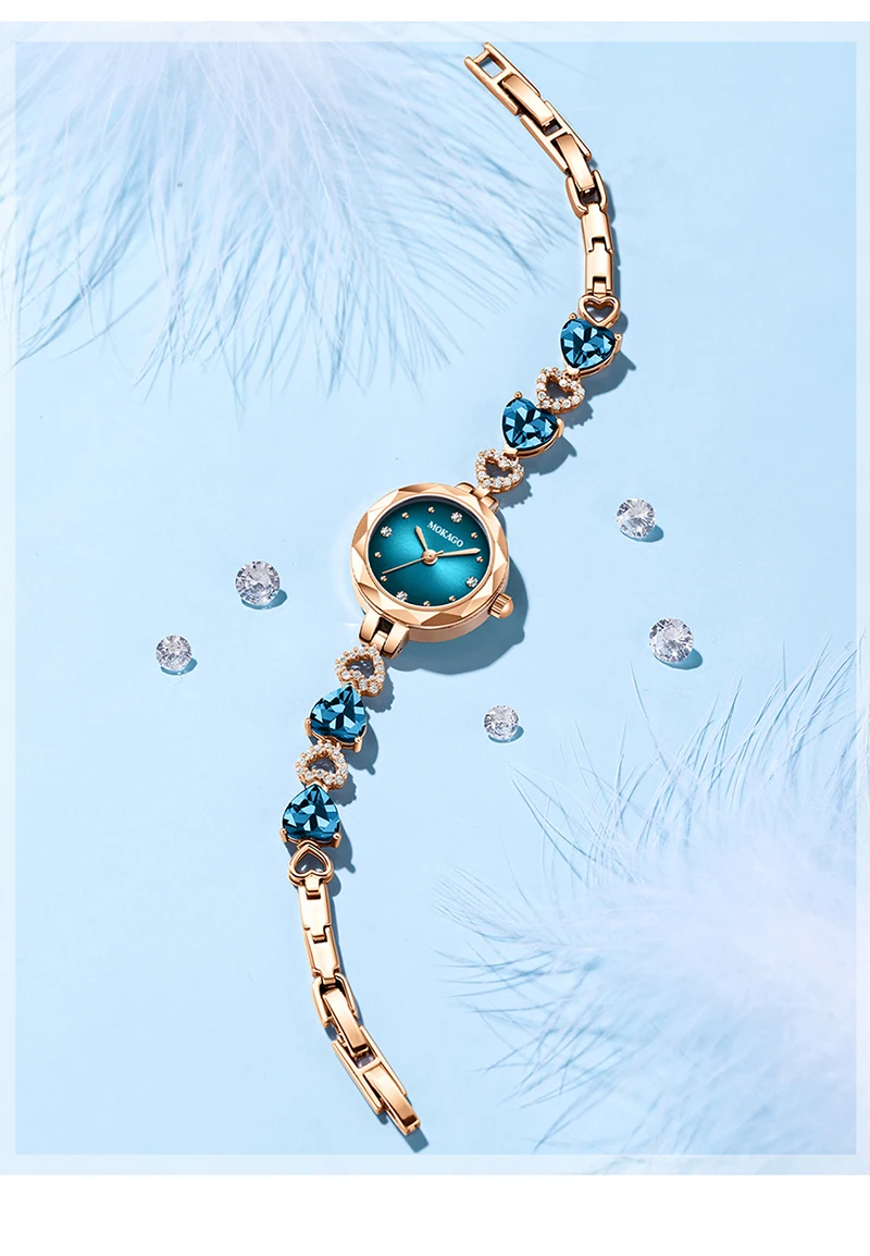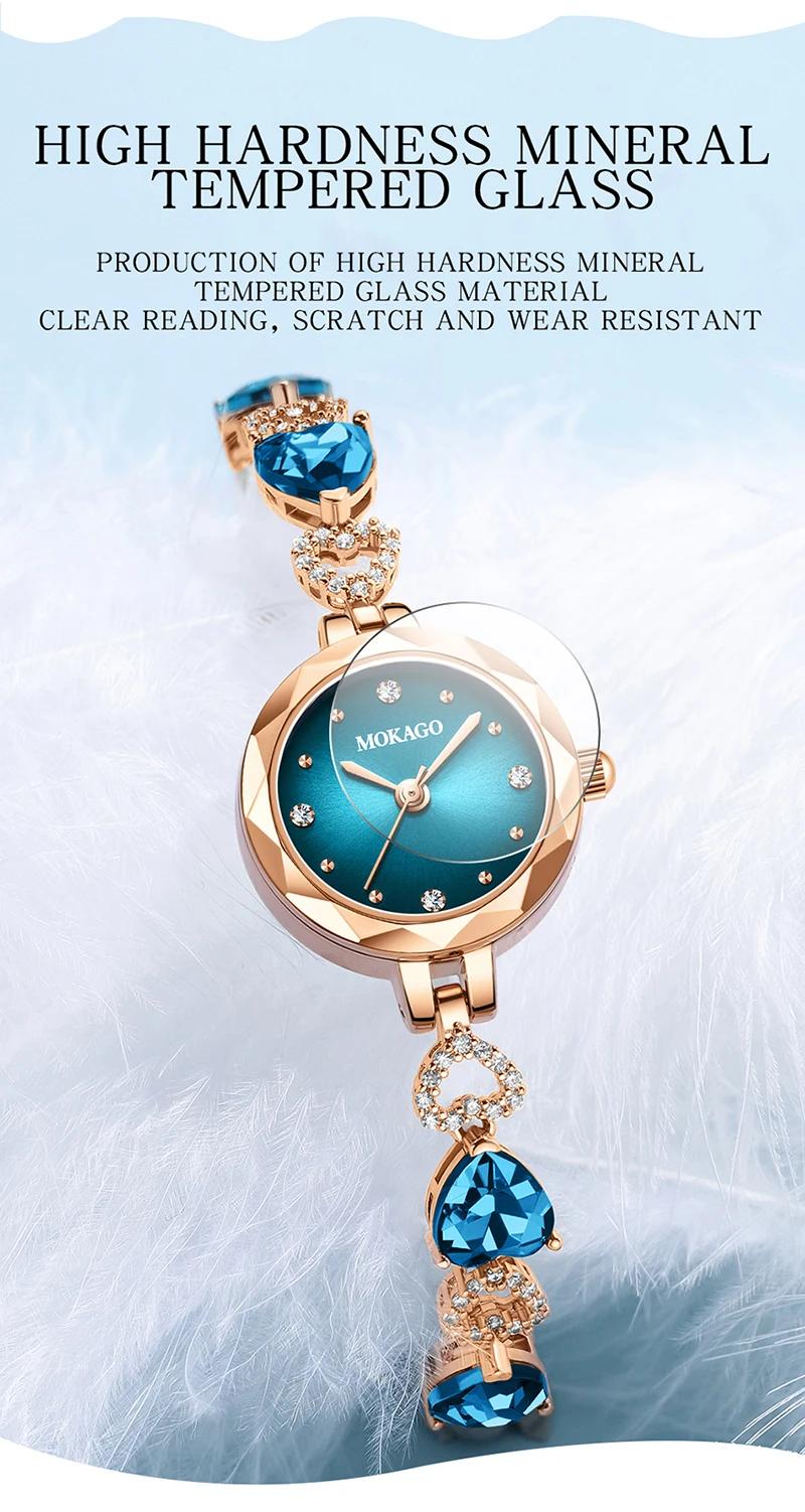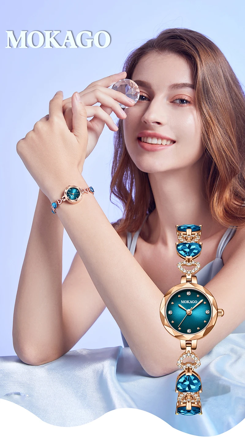 This watch boasts a luxurious design with its rose gold top brand and charming blue sea motif, perfect for fashion-conscious women.