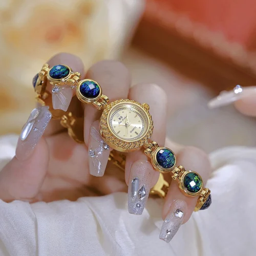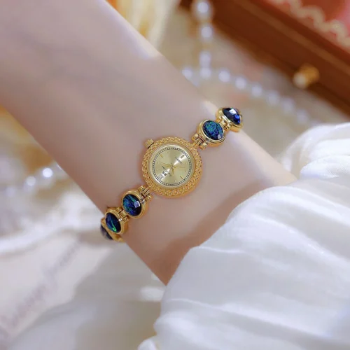 Luxury Gold Quartz Women Watches Fashion Green Malachite Bracelet Watch High Quality Waterproof Wristwatch Female Clock Gift