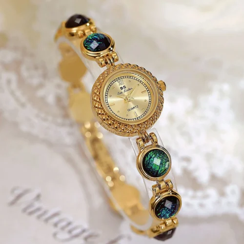Luxury Gold Quartz Women’s Watch, Green Malachite Bracelet, Waterproof Wristwatch