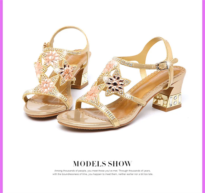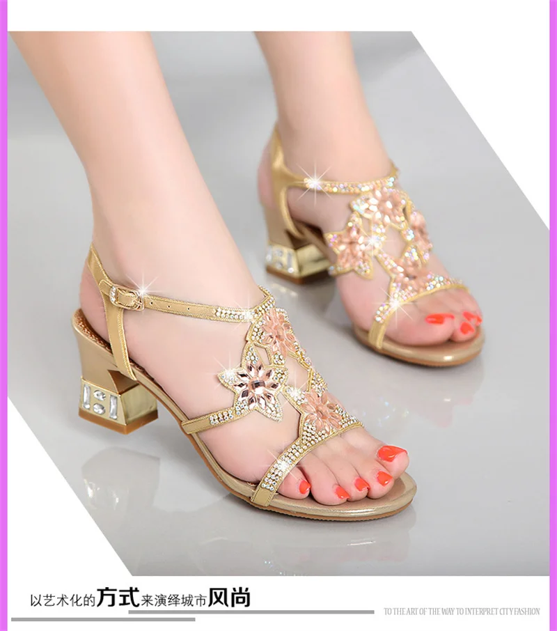 Luxury High Heel Sandals for Women – Diamond-Embellished Beach Shoes