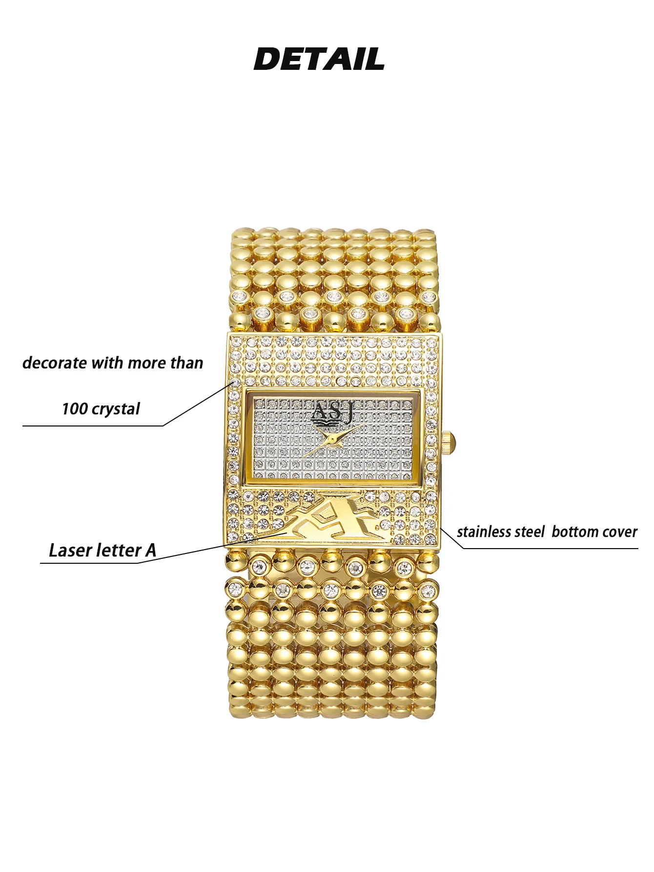 Luxury Women’s Watch – Fashion Golden Stainless Steel Quartz Wristwatch