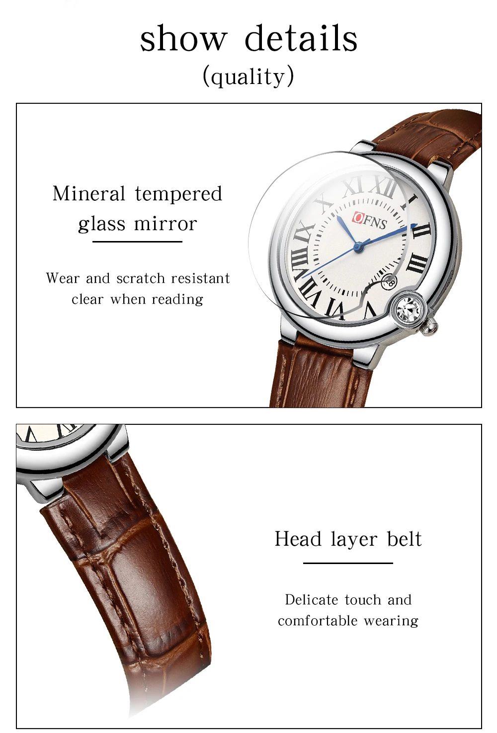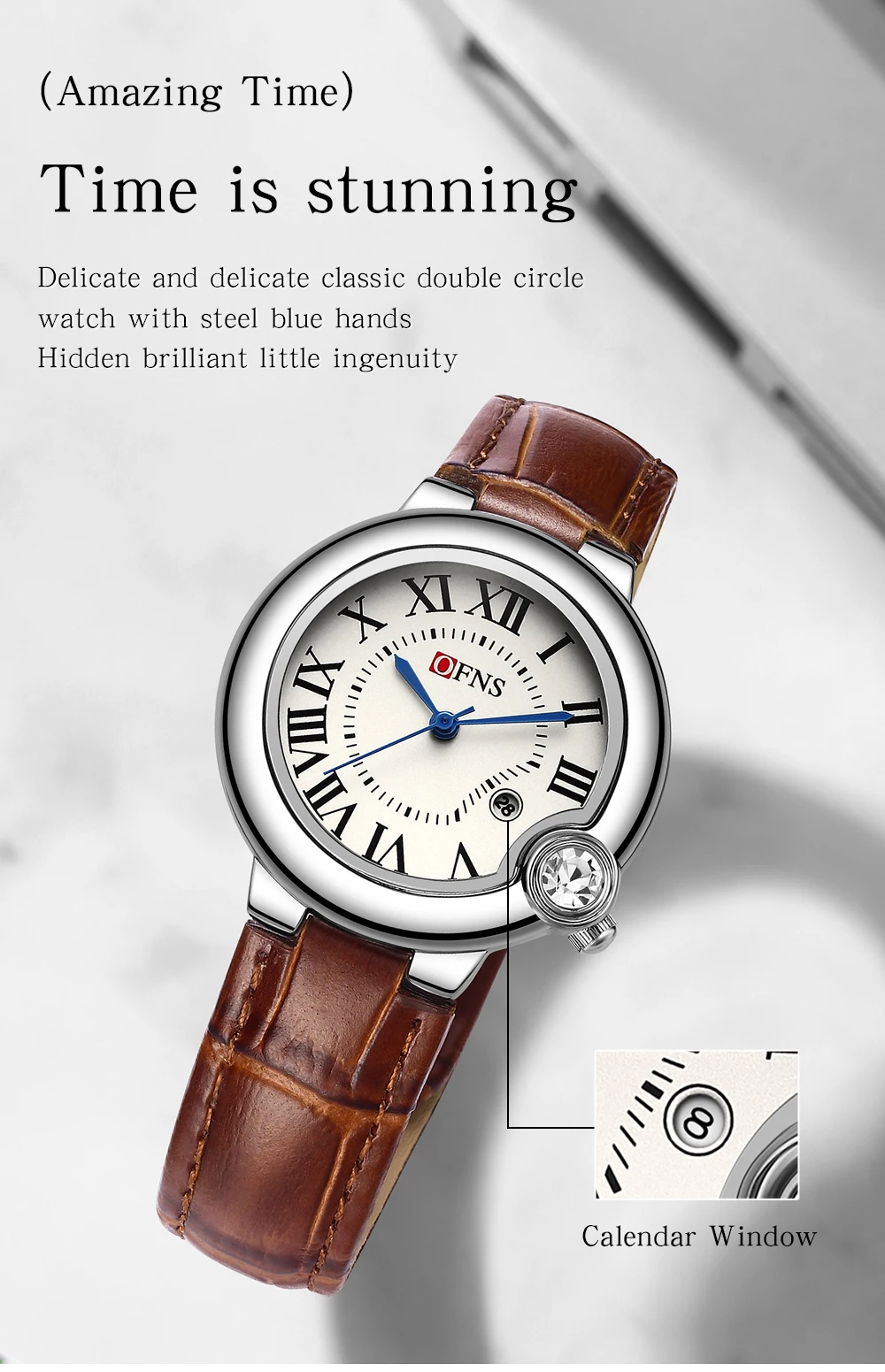 OFNS Women’s Quartz Watch with Roman Scale and Calendar, Waterproof, Fashionable and Versatile