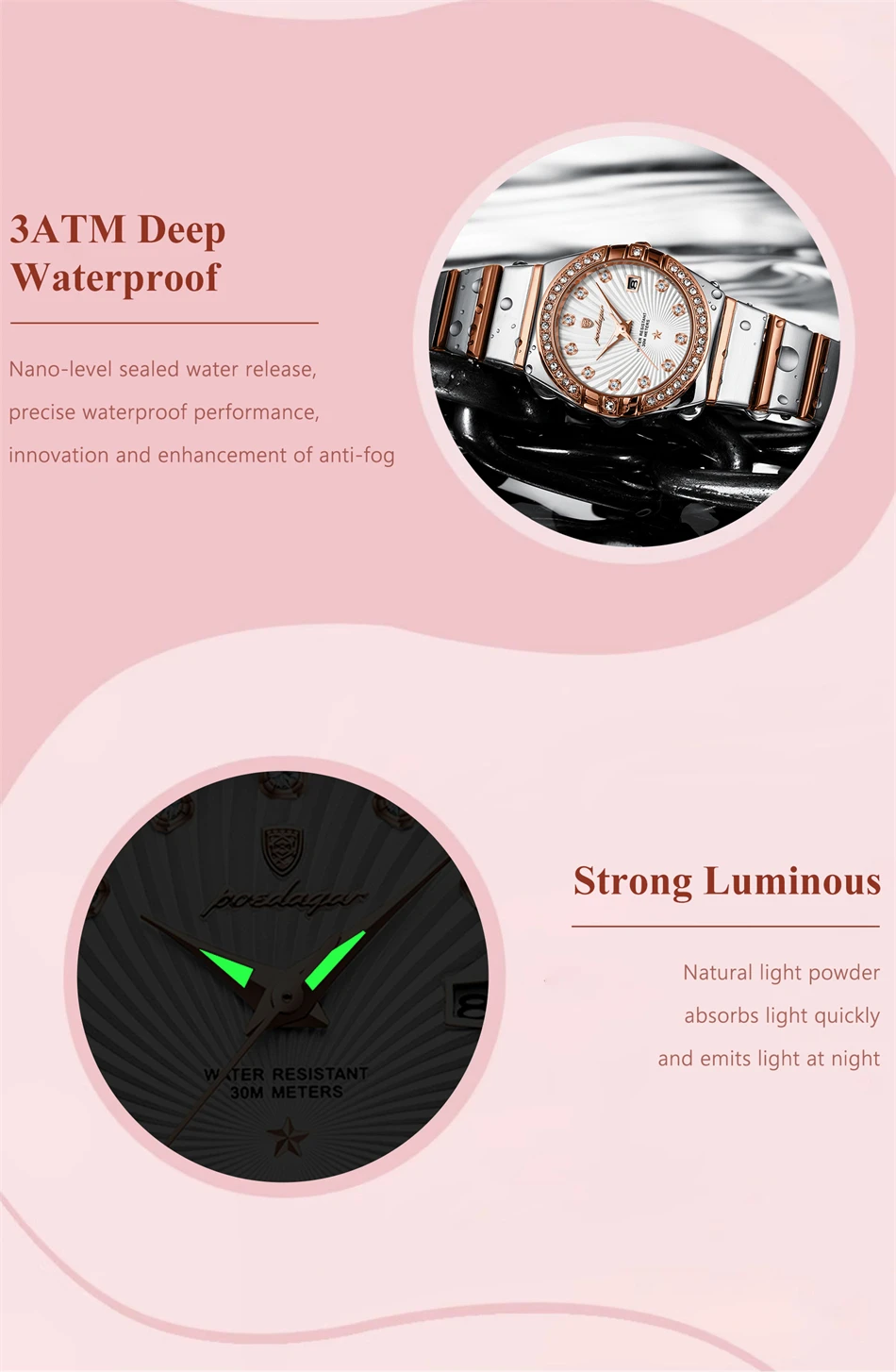 POEDAGAR Luxury Women’s Wristwatch – Waterproof Luminous Date Stainless Steel Quartz Watch