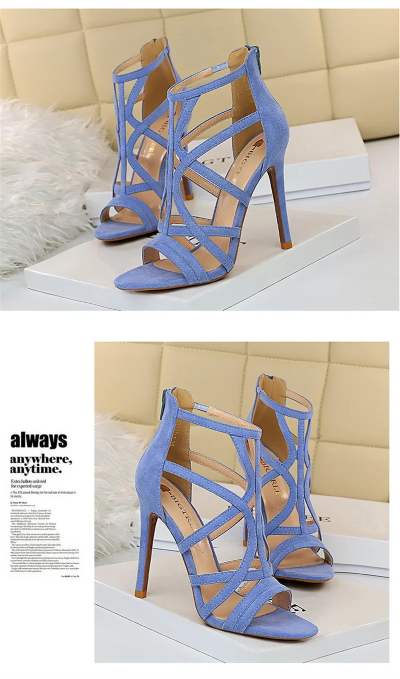 Roman Style Stiletto Sandals for Women – Peep Toe Back Zip Party Pumps