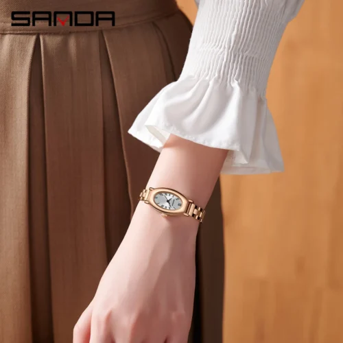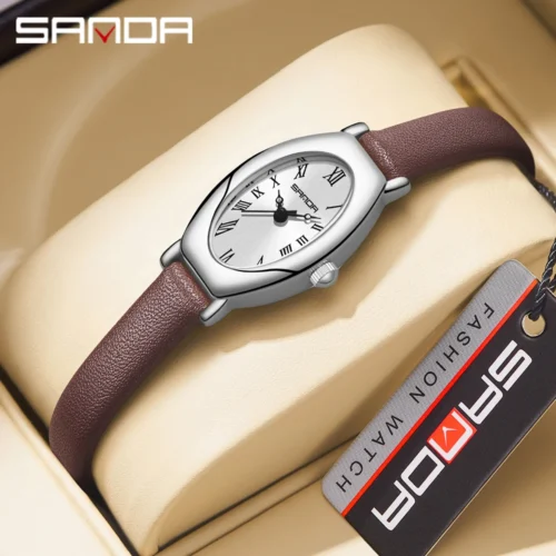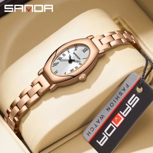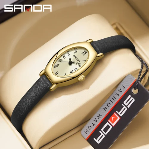 SANDA Women’s Waterproof Quartz Watch with Roman Numerals and Square Dial