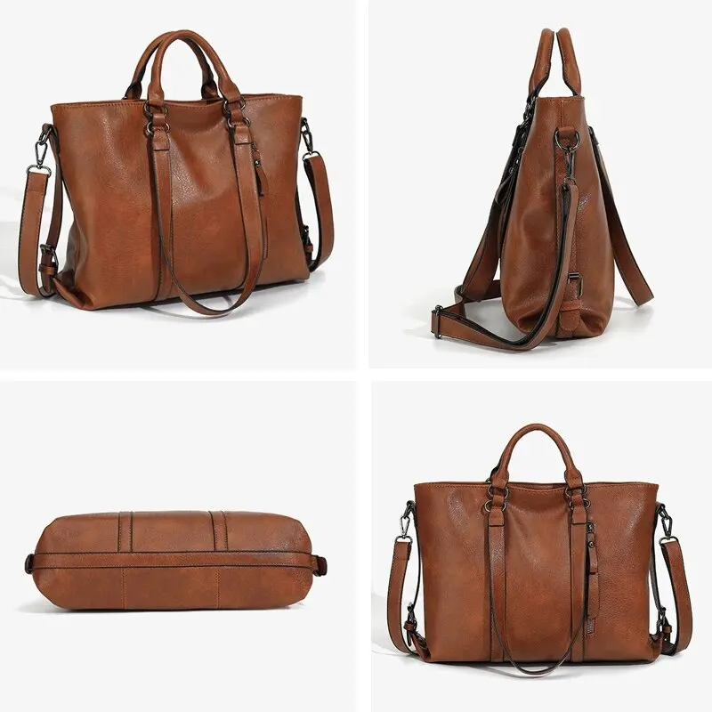 Vintage Leather Tote Bag for Women – Large Capacity Designer Shoulder Handbag