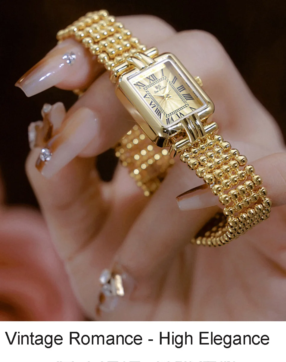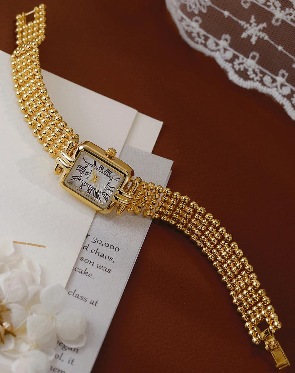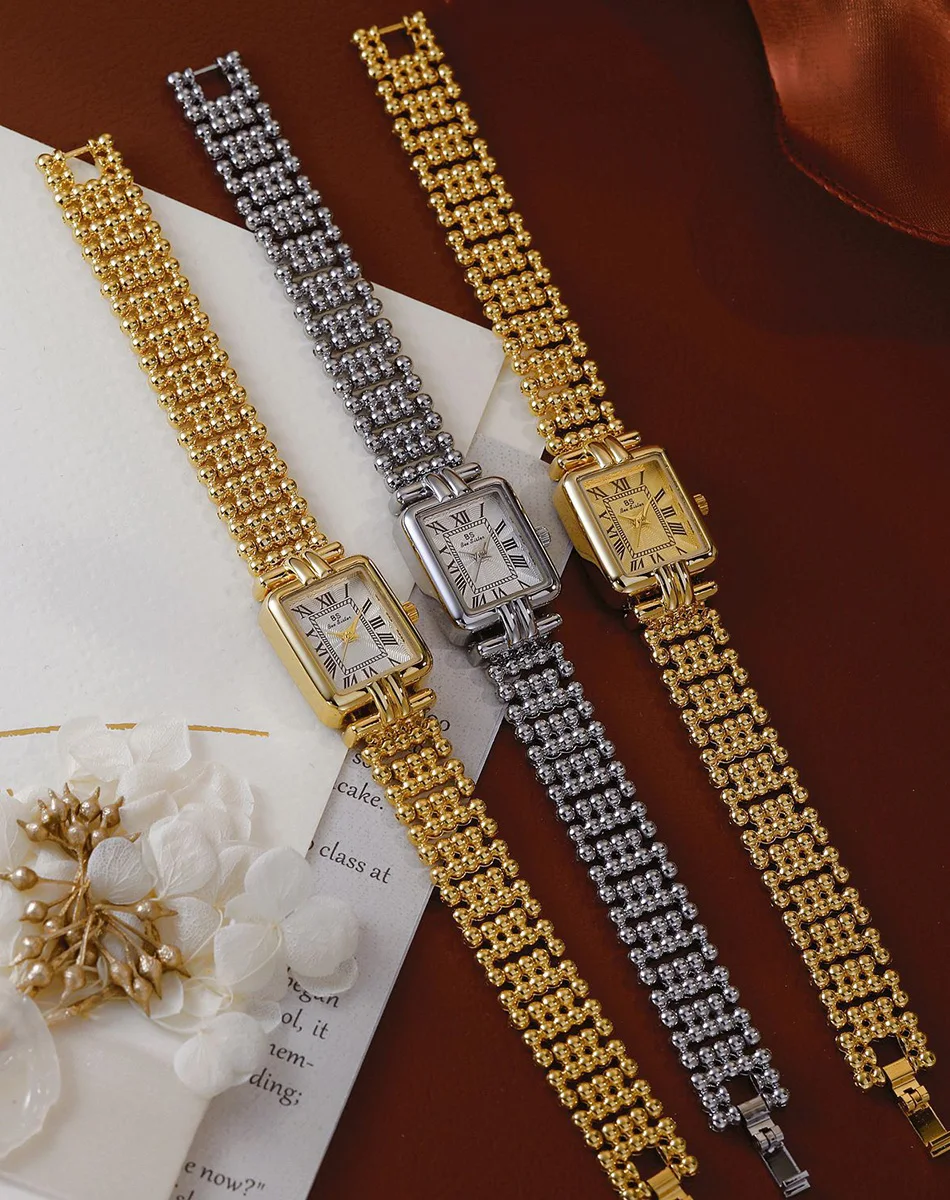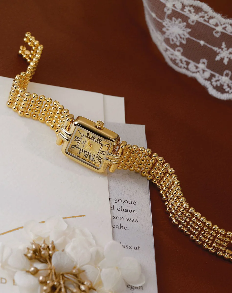 Vintage Watch Women Luxury Gold Square Quartz Watches Ladies Fashion Silver Bracelet Roman Scale Clock Gifts