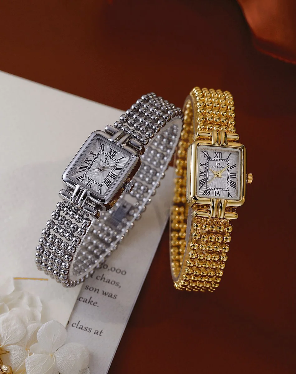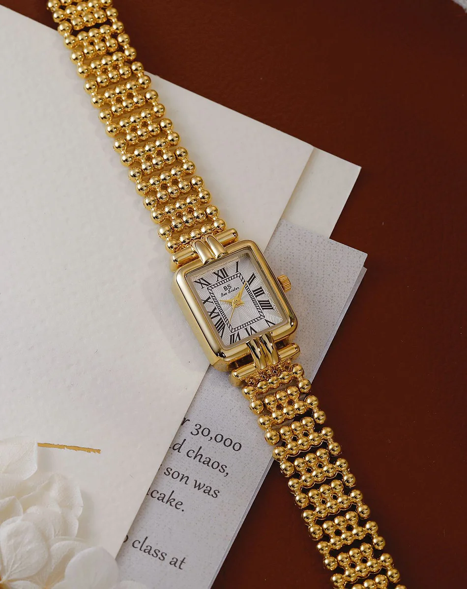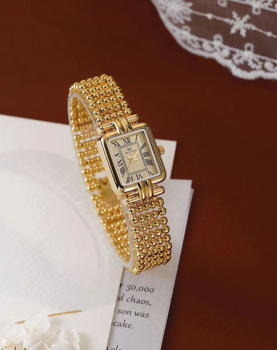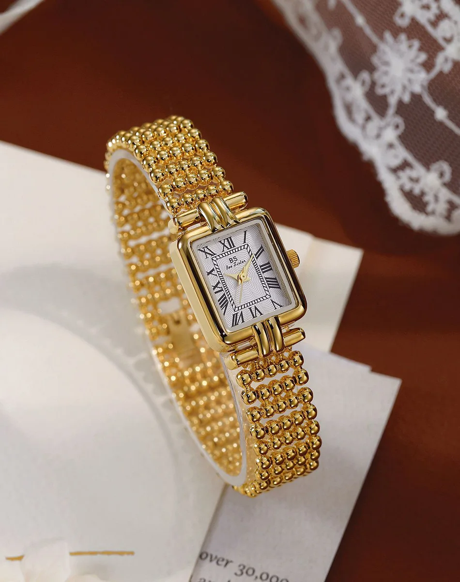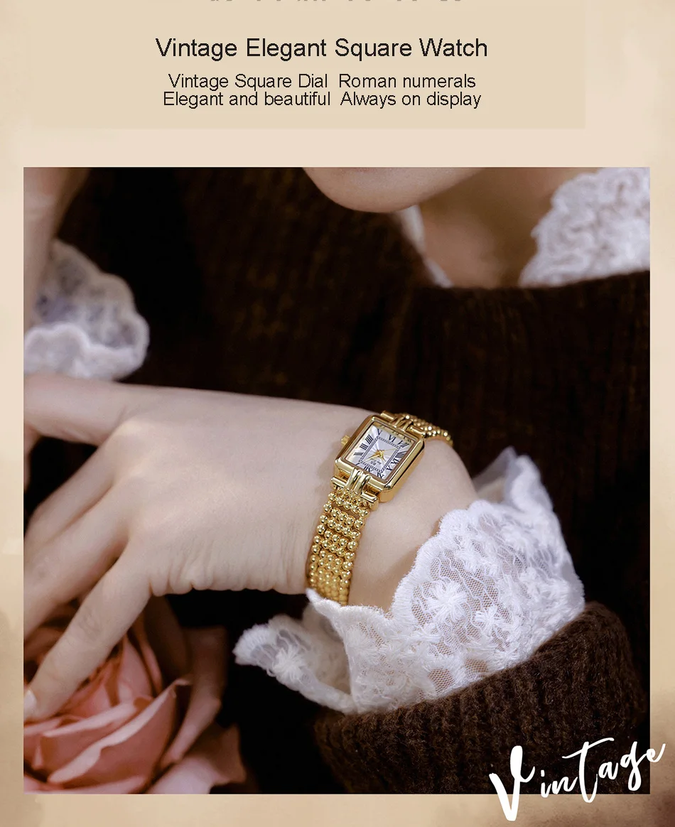 Vintage Watch Women Luxury Gold Square Quartz Watches Ladies Fashion Silver Bracelet Roman Scale Clock Gifts