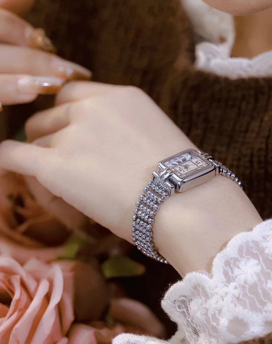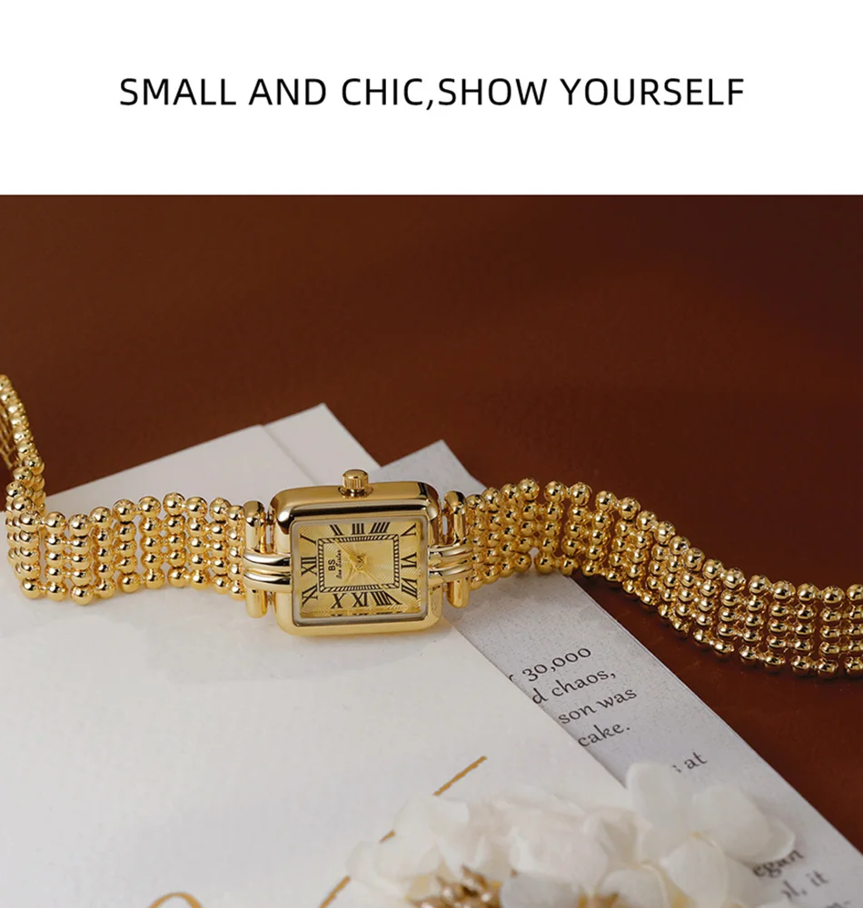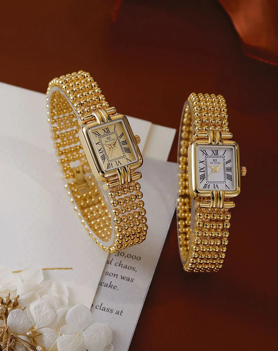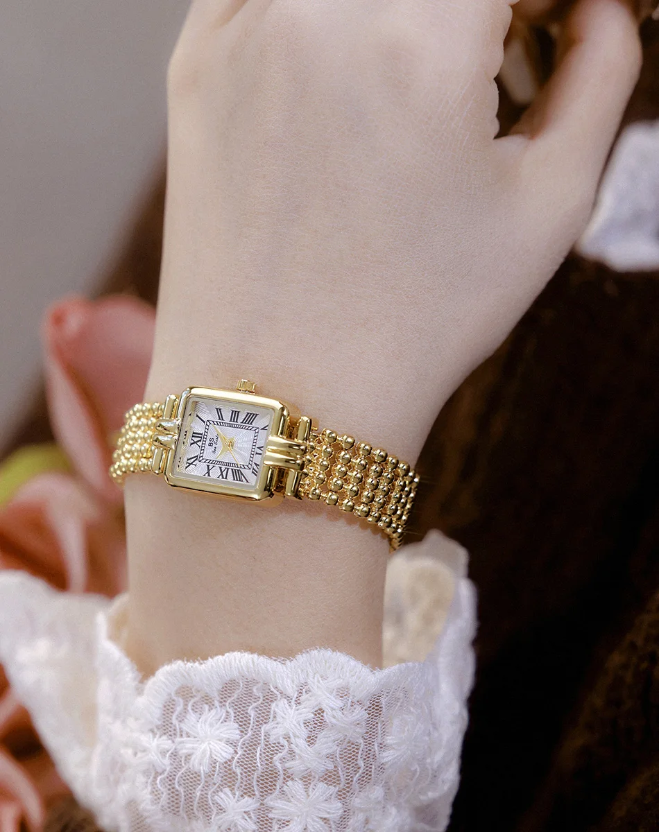 Vintage Watch Women Luxury Gold Square Quartz Watches Ladies Fashion Silver Bracelet Roman Scale Clock Gifts
