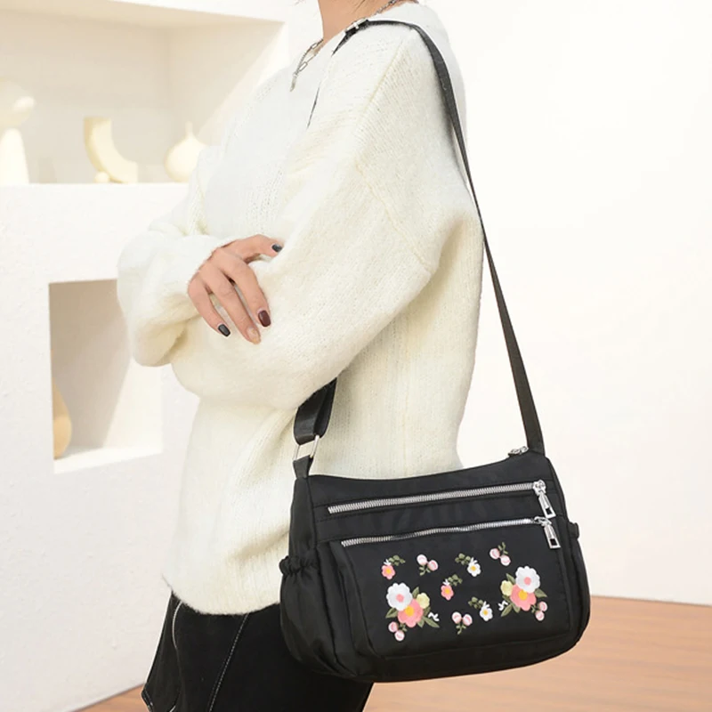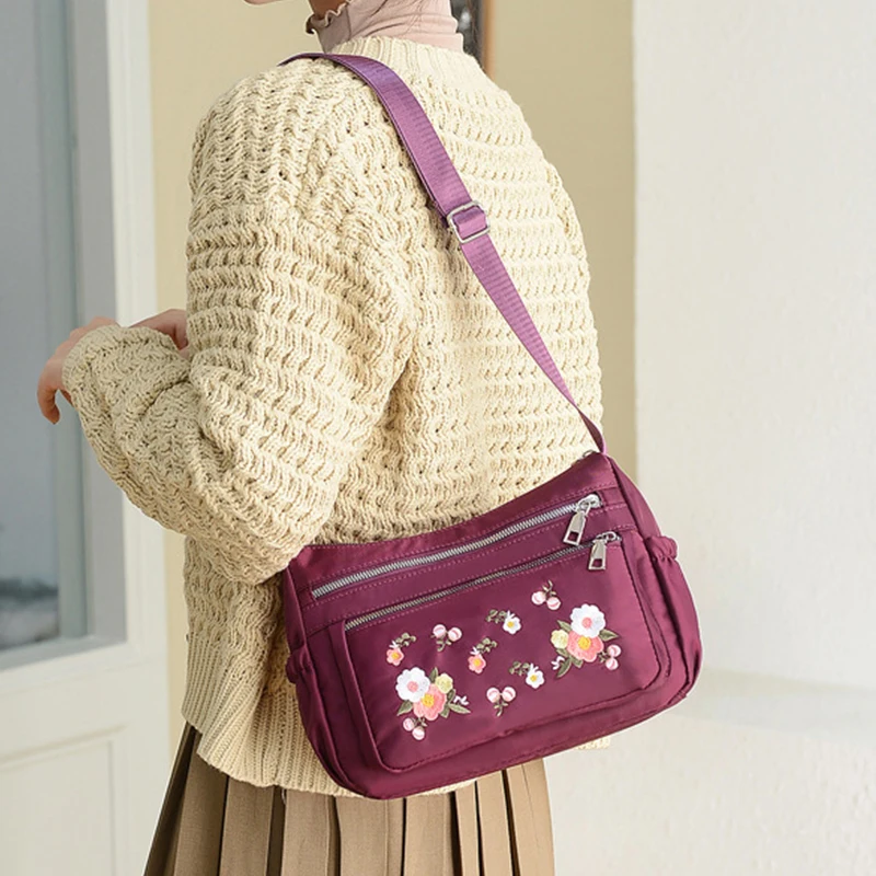 Women Waterproof Nylon Messenger Crossbody Bag Multifunctional Casual Shoulder Bag