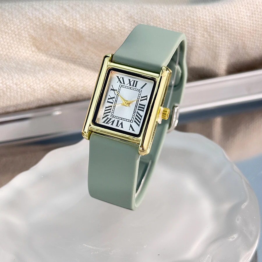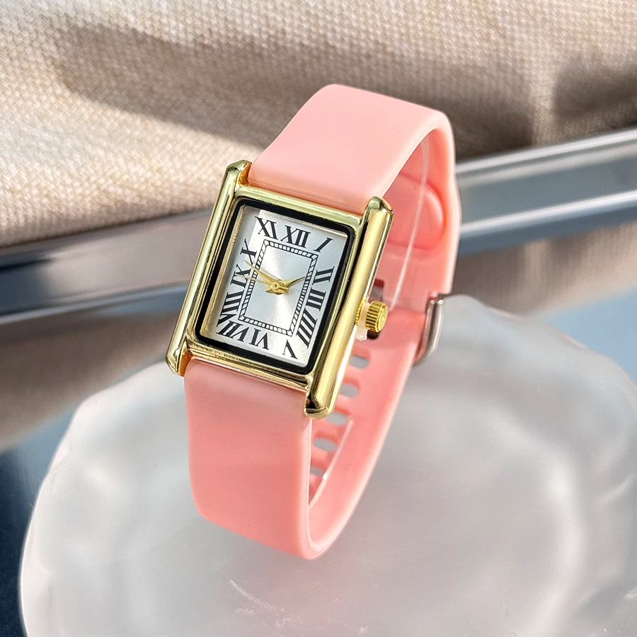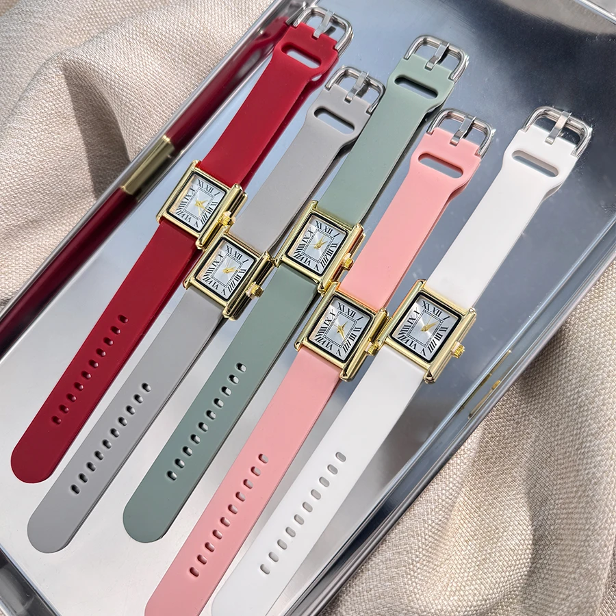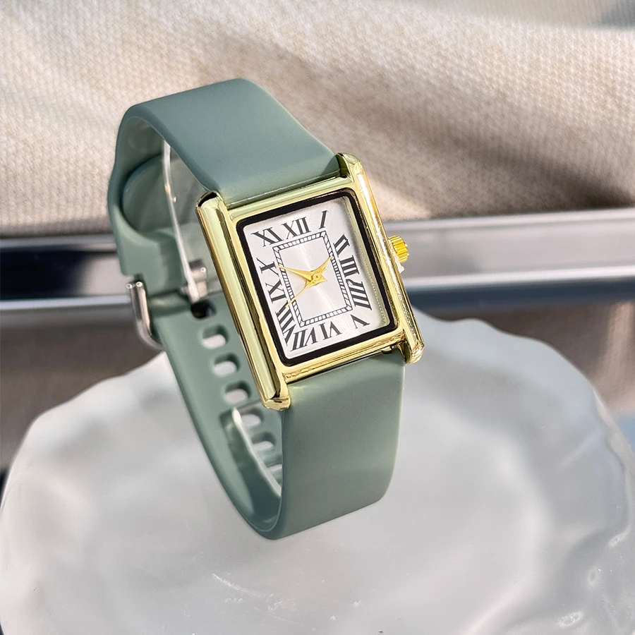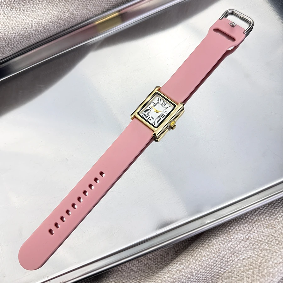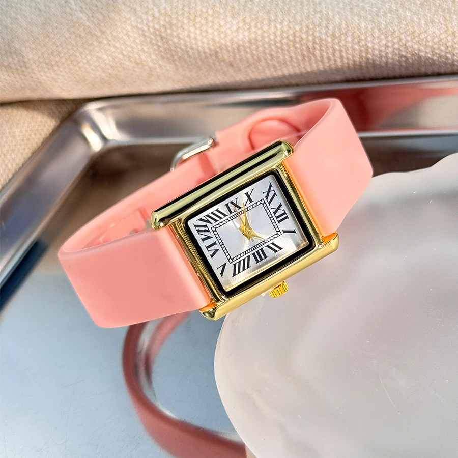Women’s Classic Square Quartz Watch – Roman Numerals & Macaron Silicone Strap