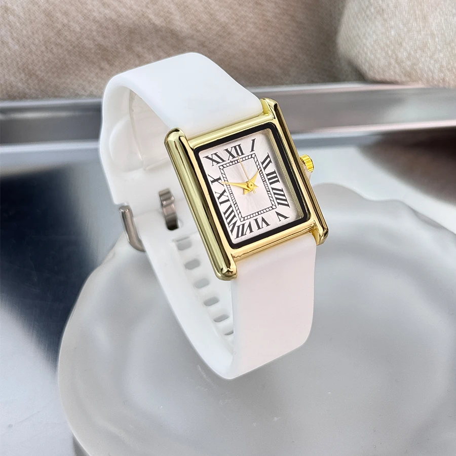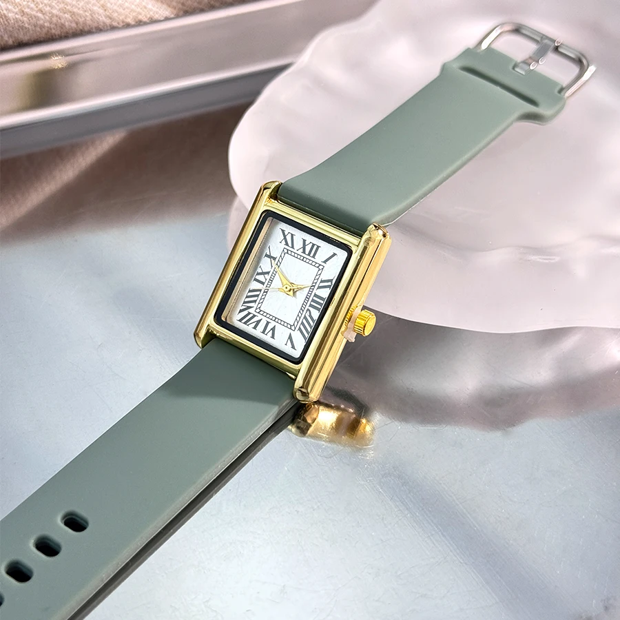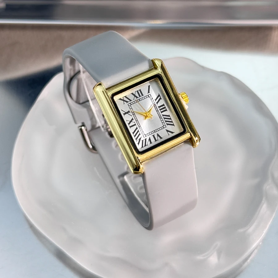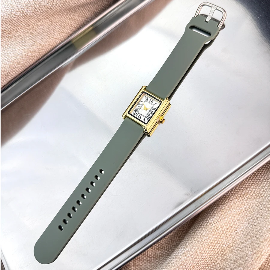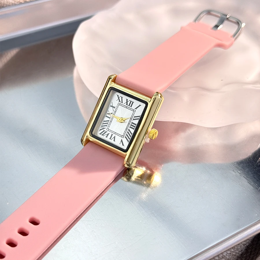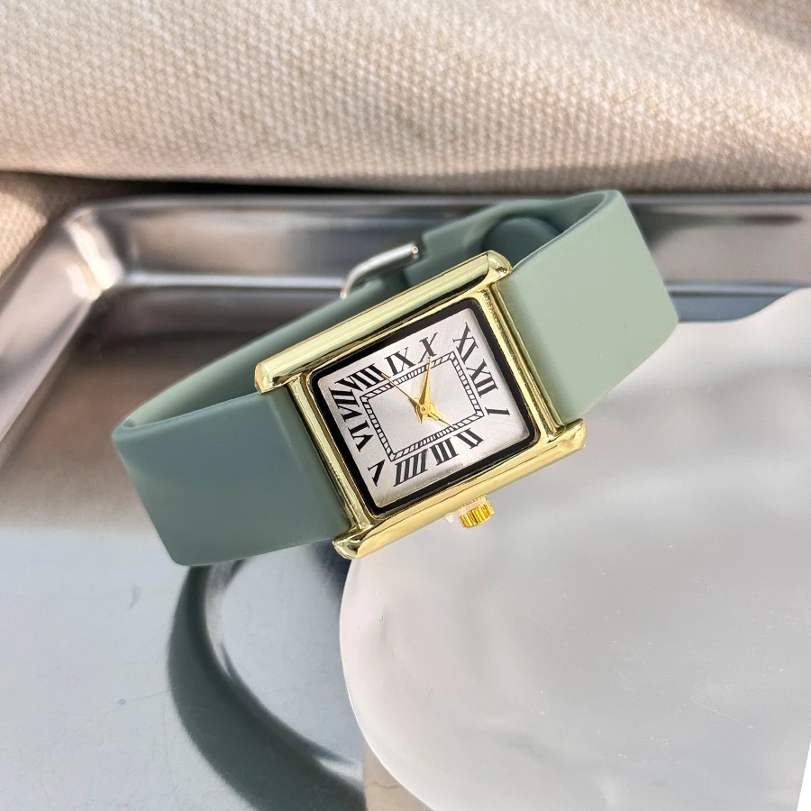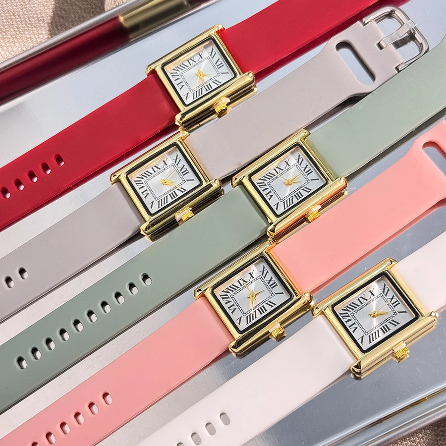 Women’s Classic Square Quartz Watch – Roman Numerals & Macaron Silicone Strap