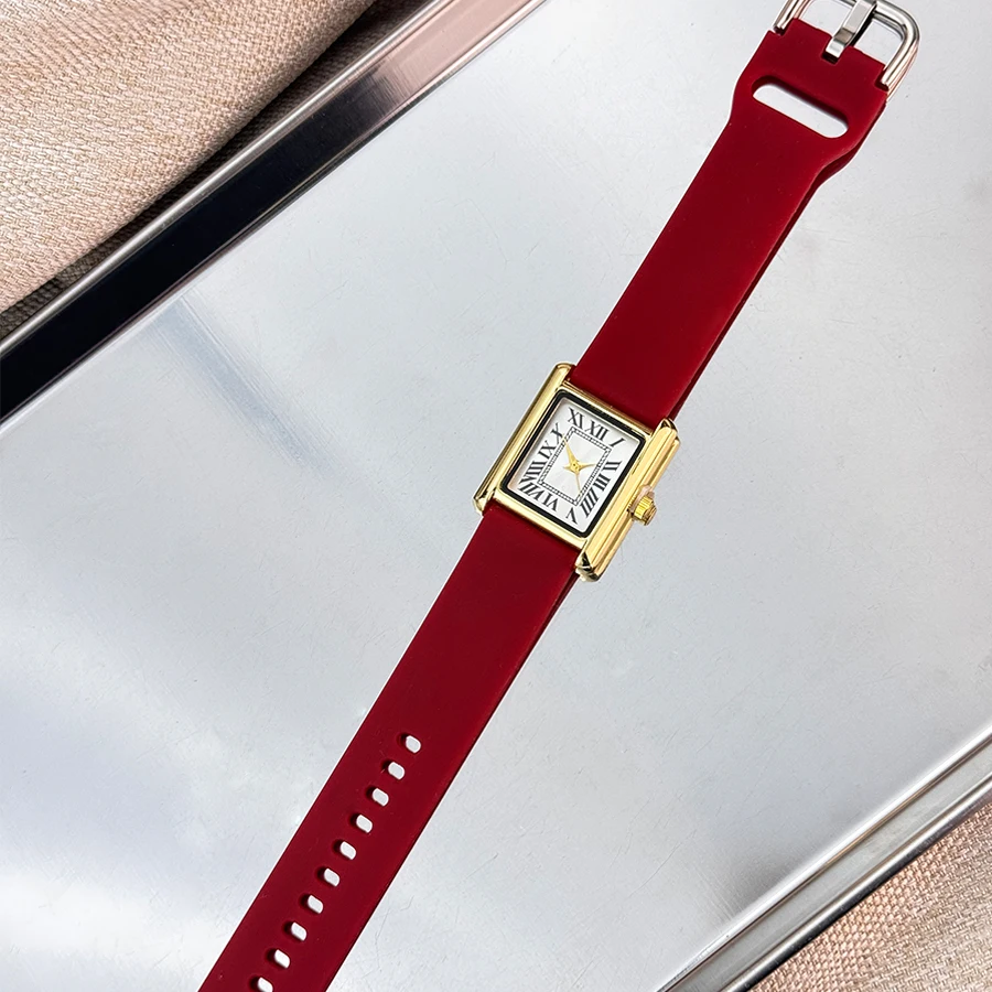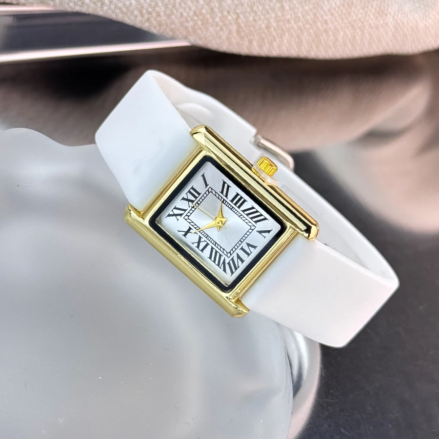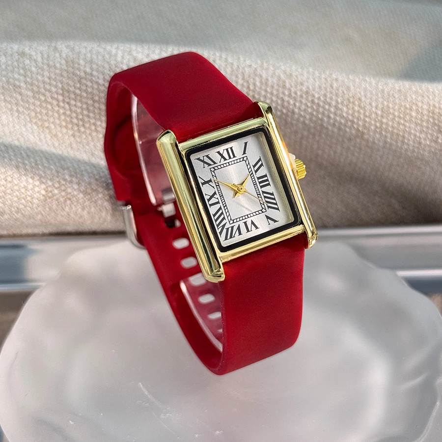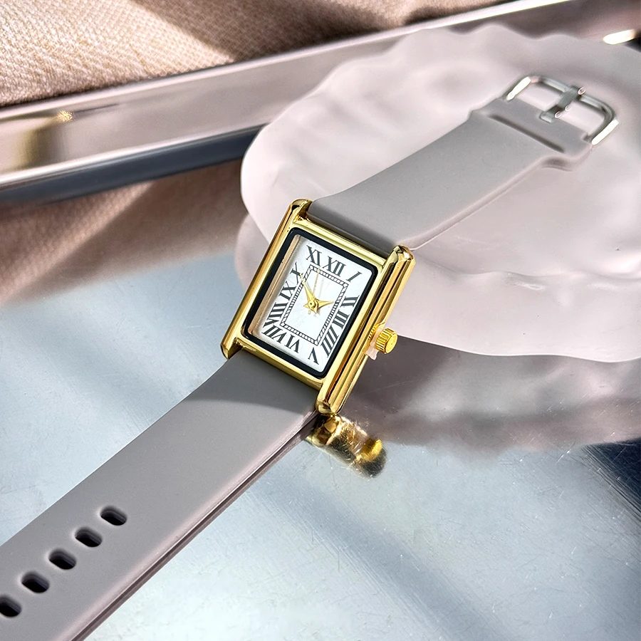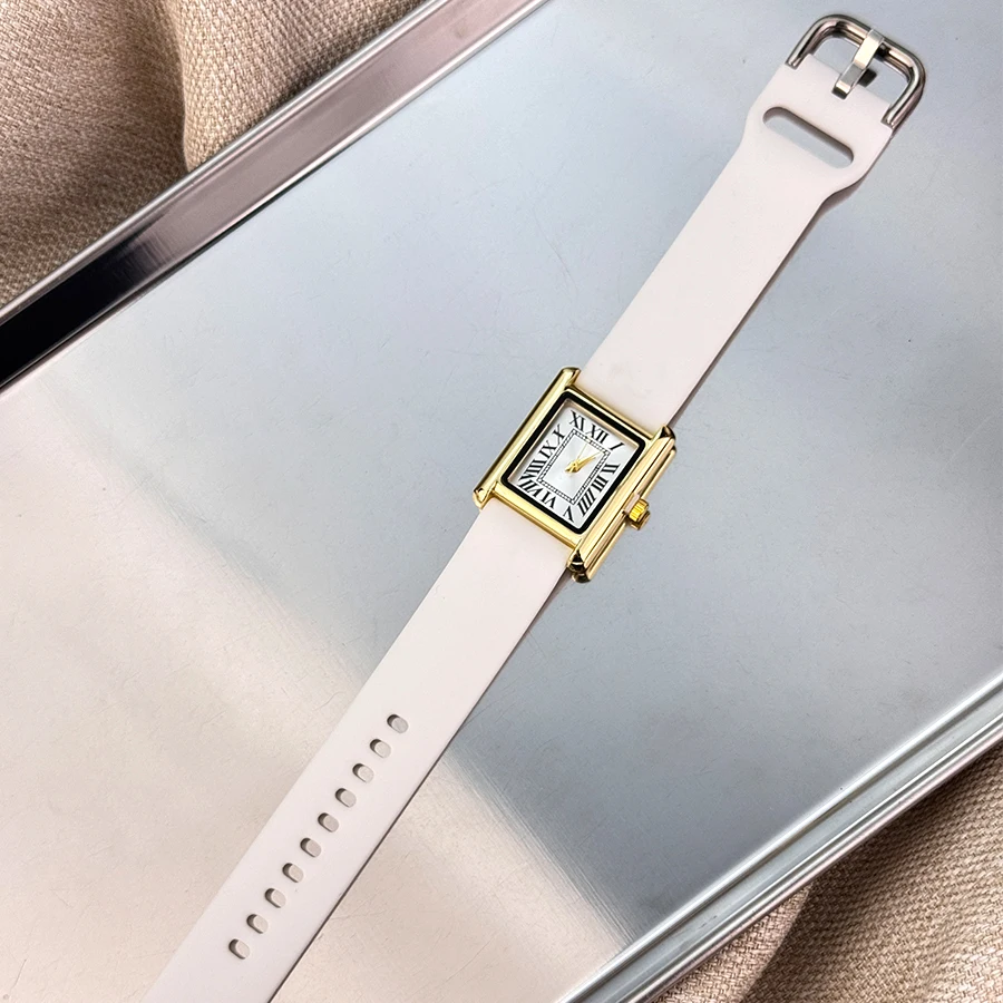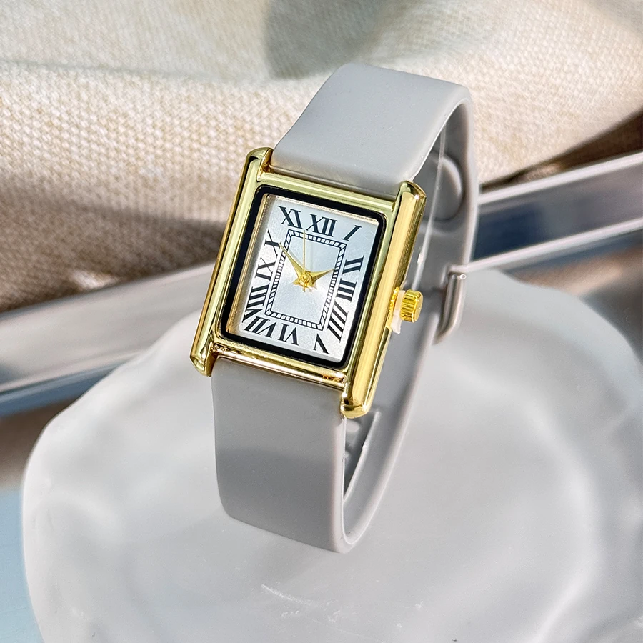 Women’s Classic Square Quartz Watch – Roman Numerals & Macaron Silicone Strap