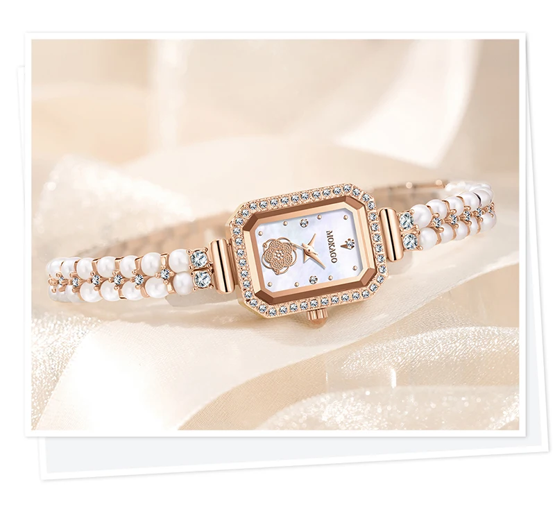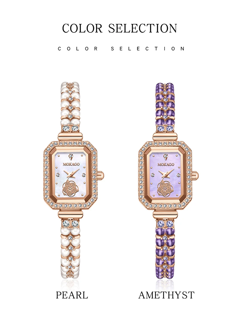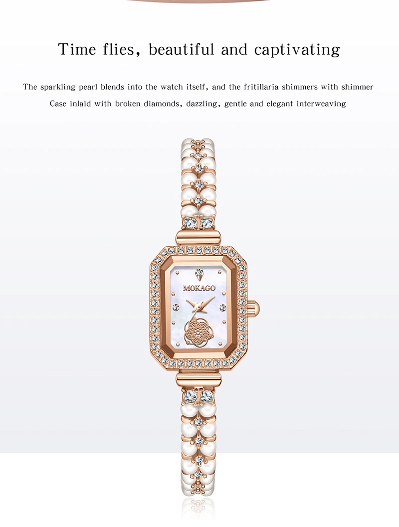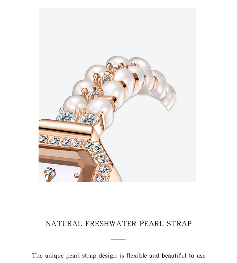 The watch features a stunning simulated pearl design, adding a touch of elegance and luxury to your wrist.