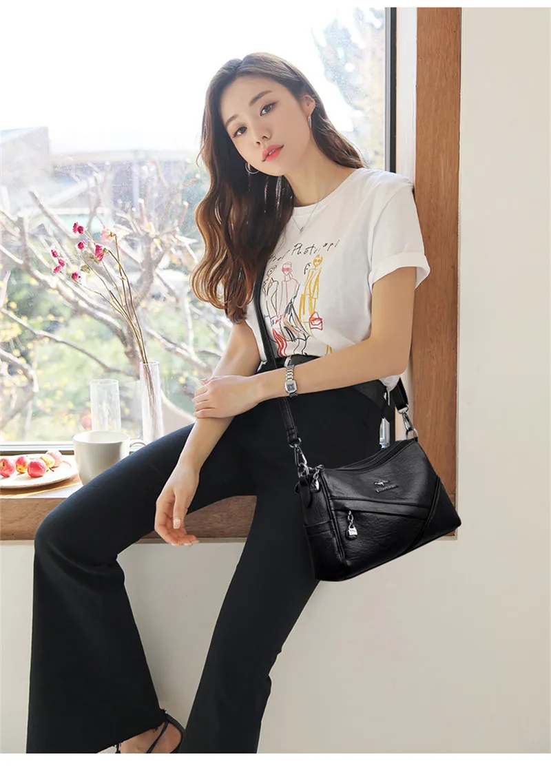 Women’s Designer Luxury Vintage Soft Leather Tote – Multi-Pocket Shoulder & Messenger Bag