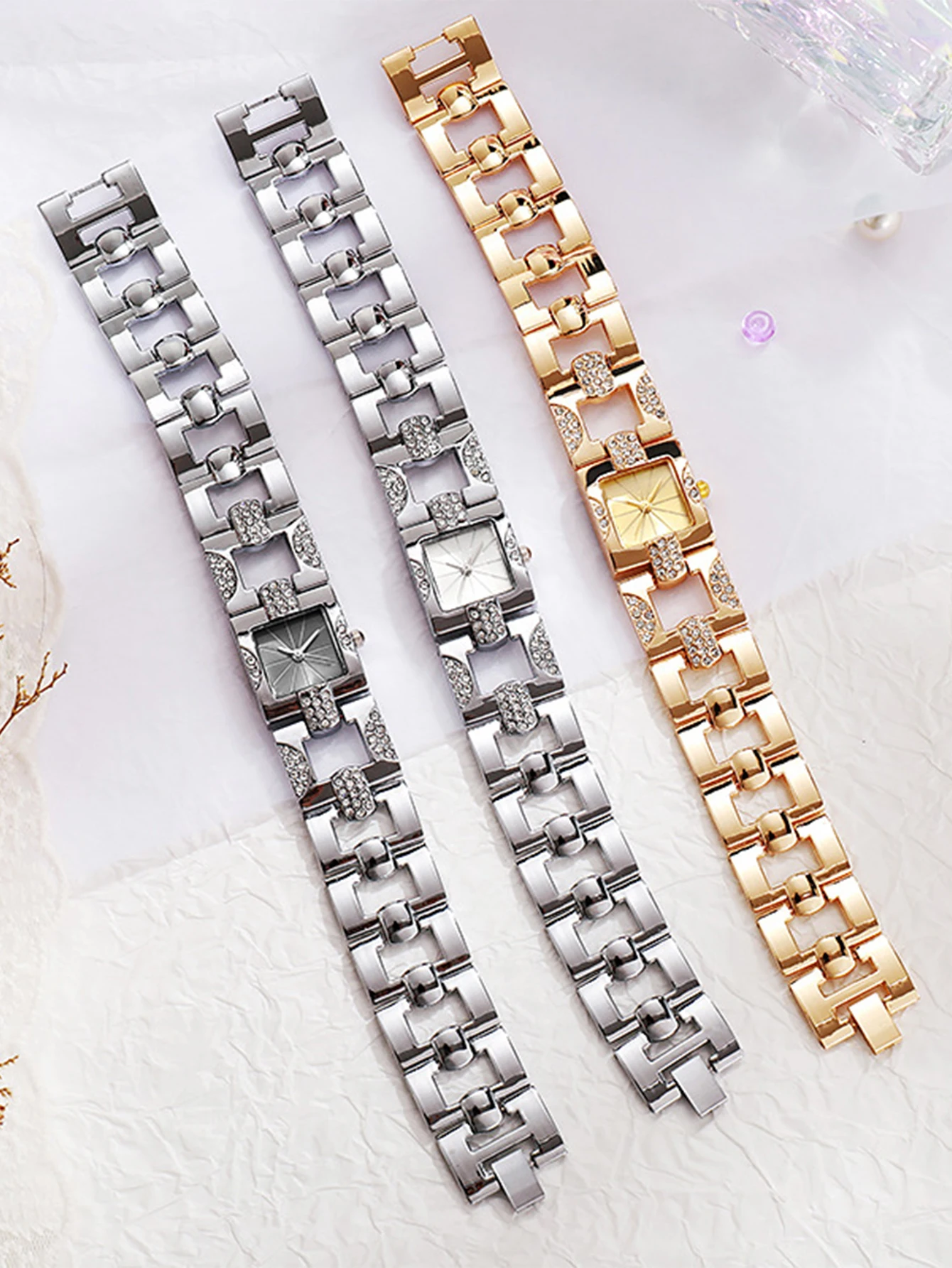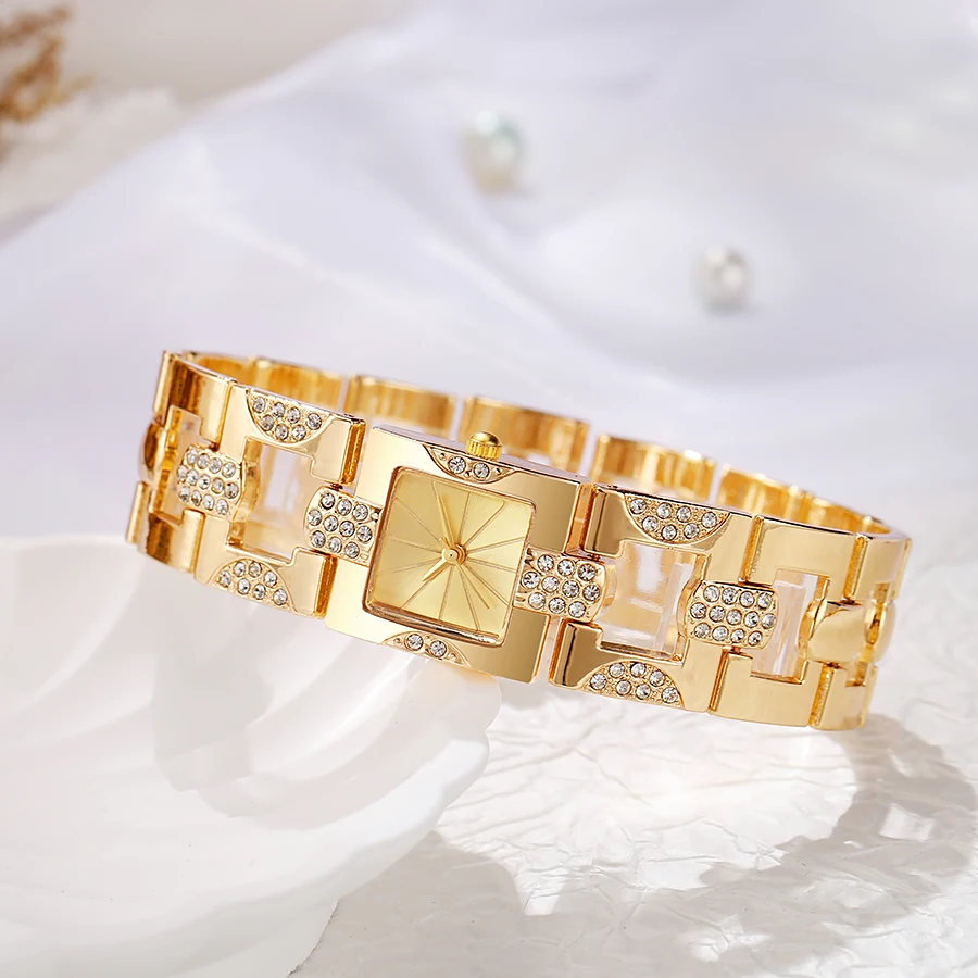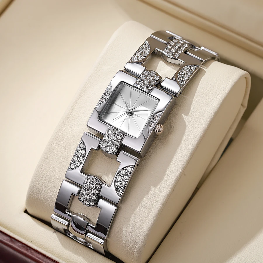 Women’s Square Diamond Quartz Bracelet Watch with Adjustable Chain