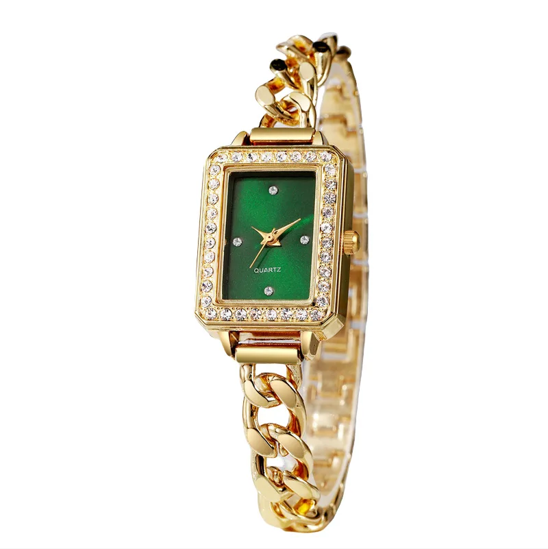 Be the first to review “Women’s Diamond-Set Square Dial Quartz Watch with Steel Chain Strap” Cancel reply