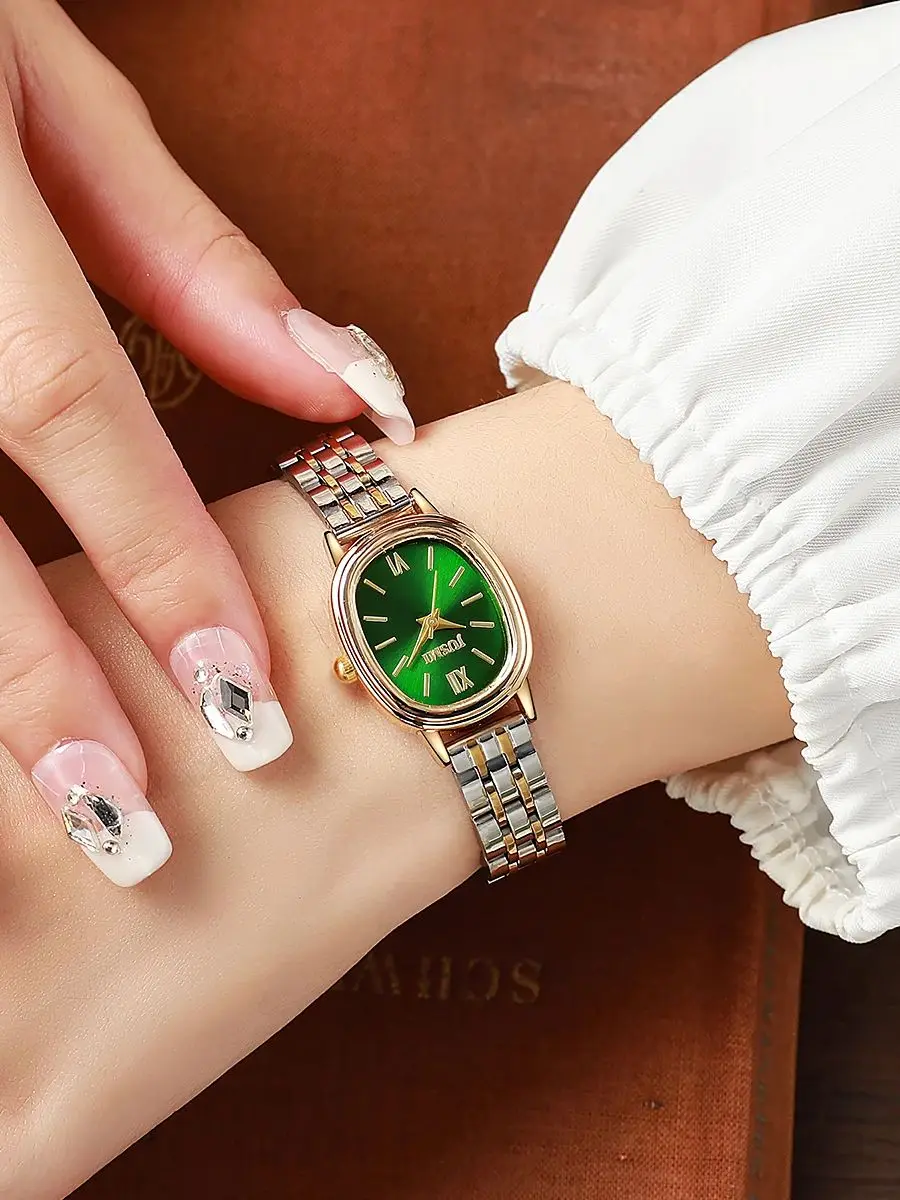 Women’s Irregular Shape Rhinestone Quartz Watch with Sun Pattern Dial