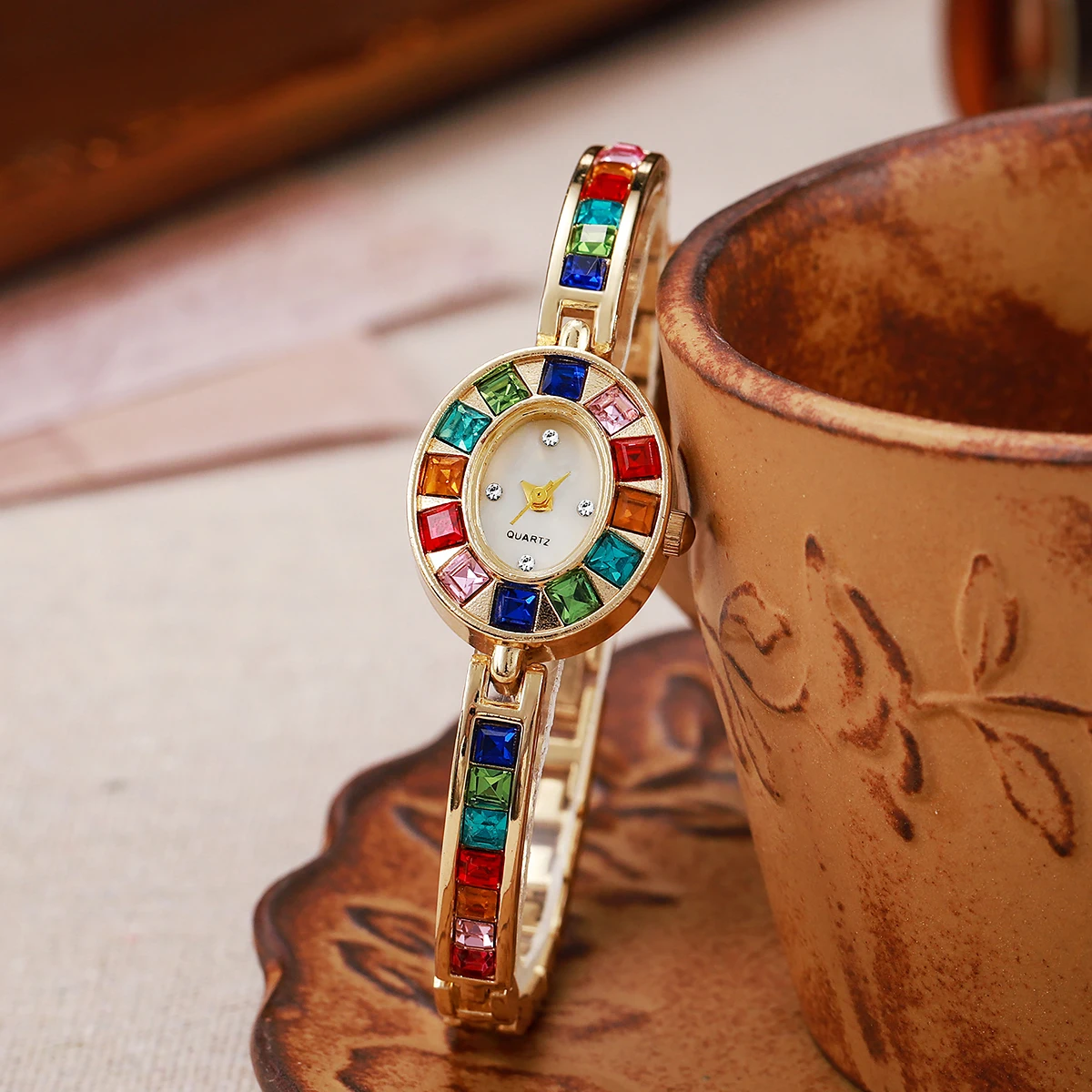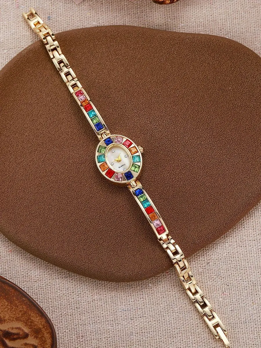 Women’s Rhinestone Chain Rectangular Quartz Watch with Colorful Dial